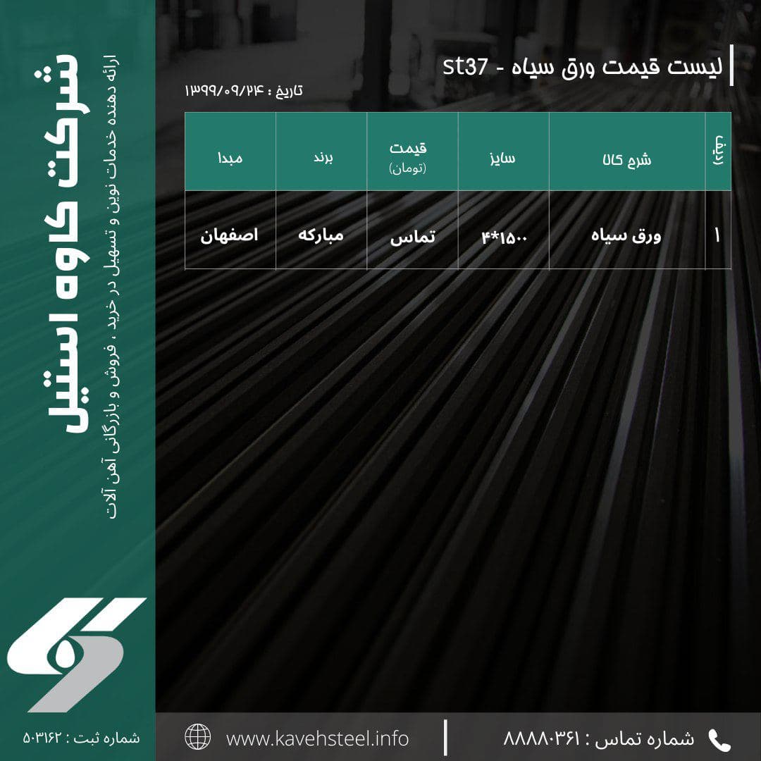 [ Photo ] 📌لیست قیمت #ورق_سیاه (st37)- مبارکه 🗓تاریخ : ۱۳۹۹/۰۹/۲۴ شماره های تماس : 📞 02188880361 📞02188780310 @steel_kaveh