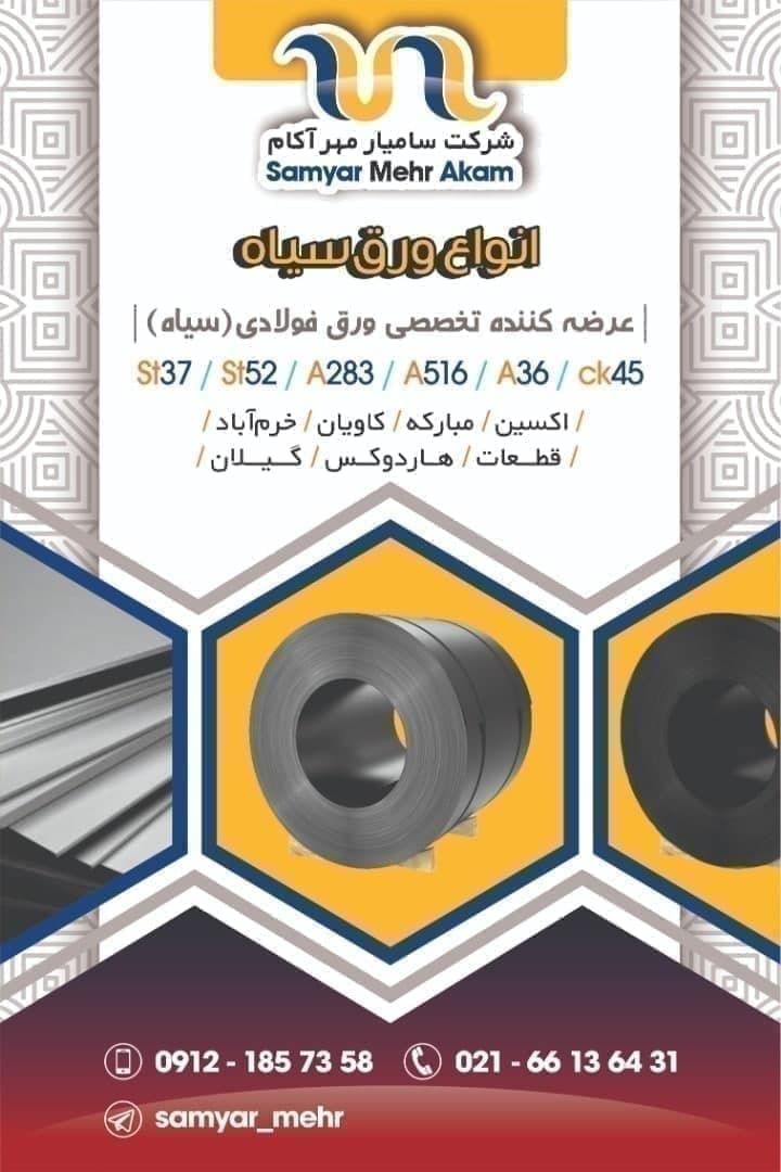 #سامیار_مهر_آکام 🔱عرضه کننده تخصصی ورق فولادی(سیاه)🔱 ❇️اکسین/مبارکه/کاویان/خرم آباد ❇️قطعات/هاردوکس/گیلان 📱0912 185 7358 ☎️021 66136431 🆔@samyar_mehr https: ...