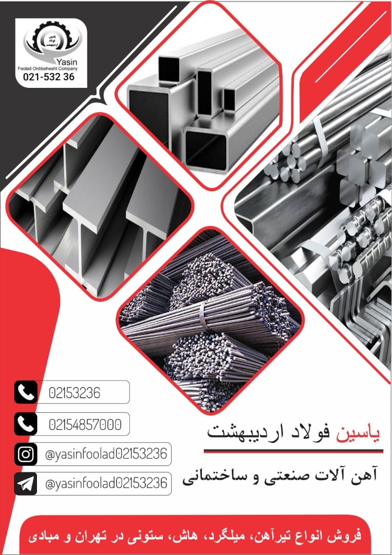 #یاسین_فولاد_اردیبهشت ✅تامین انواع آهن آلات صنعتی و ساختمانی در تهران و مبادی 🔹تیرآهن 🔸میلگرد 🔹هاش 🔸ستونی ☎️02153236 ☎️02154857000 🆔https://t.me/ya ...