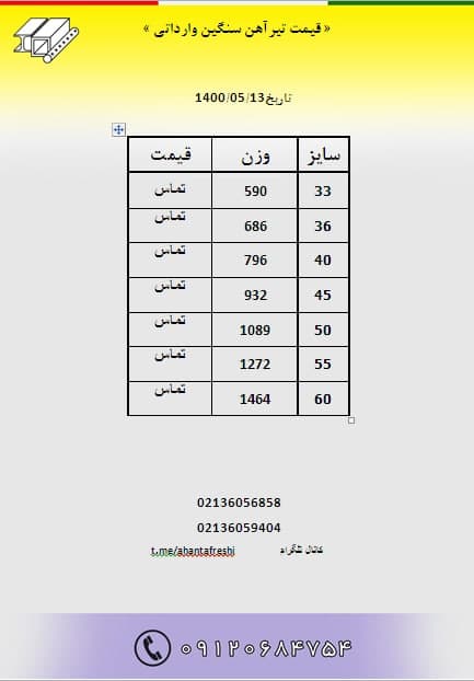 قیمت #تیرآهن_سنگین وارداتی انبار تهران قیمت به صورت تلفنی ۰۲۱_۳۶۰۵۶۸۵۸ ۰۲۱_۳۶۰ ...