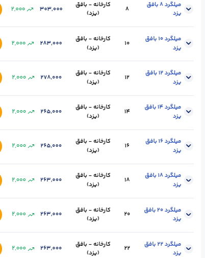 اعلام موجودی اصفهان آهن میلگرد بافق