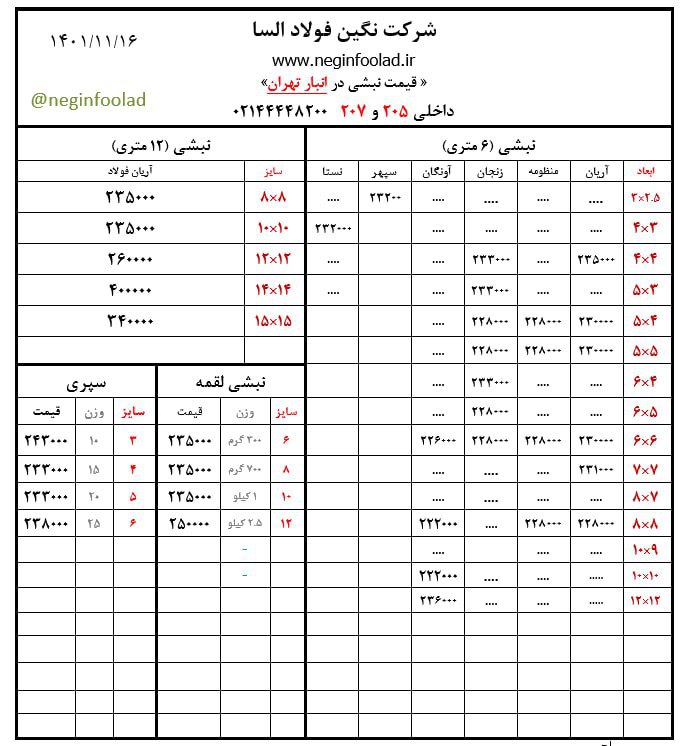 ⬅️شرکت #نگین_فولاد_السا💠فروش انواع مقاطع فولادی 🔸تیرآهن ساختمانی و صنعتی 🔸هاش سبک و سنگین 🔸نبشی و ناودانی 🔸میلگرد آجدار و ساده 🔸ورق سیاه، گالوانیزه و روغنی 🔸انو ...