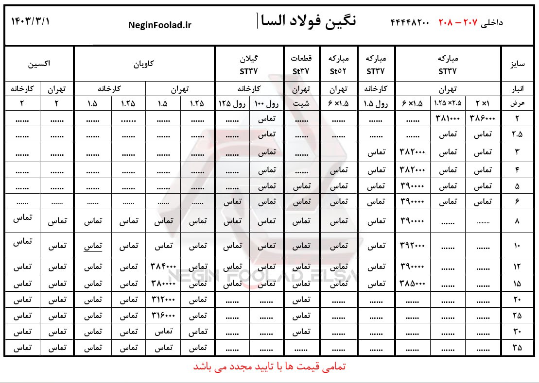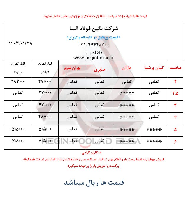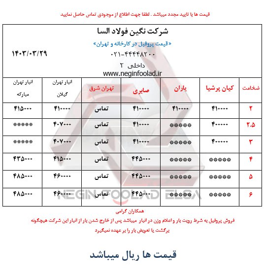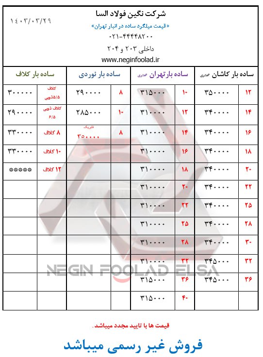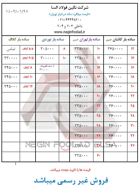 🛒 فروش مستقیم و بی واسطه 🌐 وبسایت: https://neginfoolad ☎️ شرکت: 02144448200 👤 باقری(ورق): 09122258934 👤 خلیلی(میلگرد/پروفیل): 09128900217 👤 گلپایگانی(میلگرد/ن ...