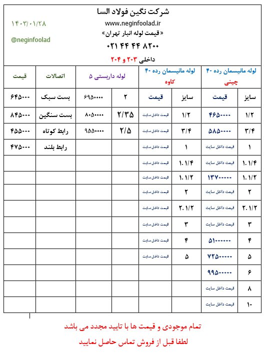 لوله #لوله_انبارتهران —رده 40 چین و کاوه #بست_رابط 📞 ۴۴ ۴۴ ۸۲۰۰ #داخلی ۲۰۳ و ۲۰۴