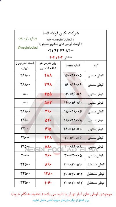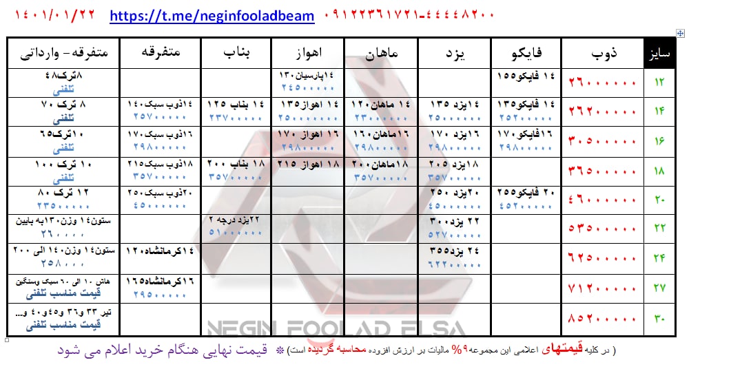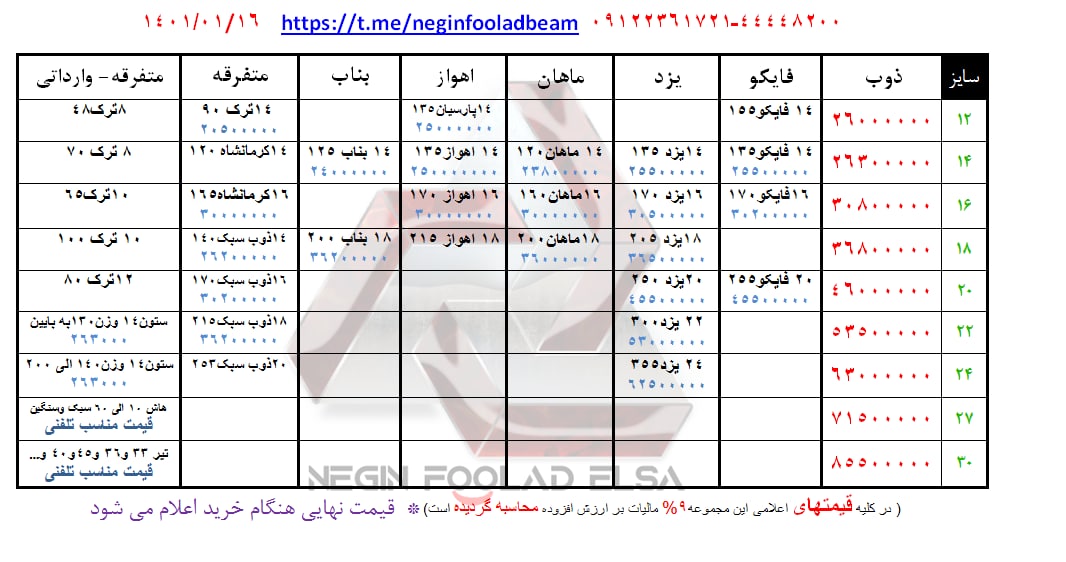 ⬅️شرکت #نگین_فولاد_السا 💠فروش انواع مقاطع فولادی 🔸تیرآهن ساختمانی و صنعتی 🔸هاش سبک و سنگین 🔸نبشی و ناودانی 🔸میلگرد آجدار و ساده 🔸ورق سیاه، گالوانیزه و روغنی 🔸ا ...