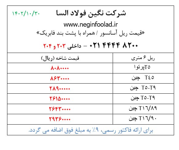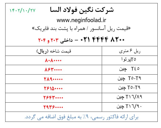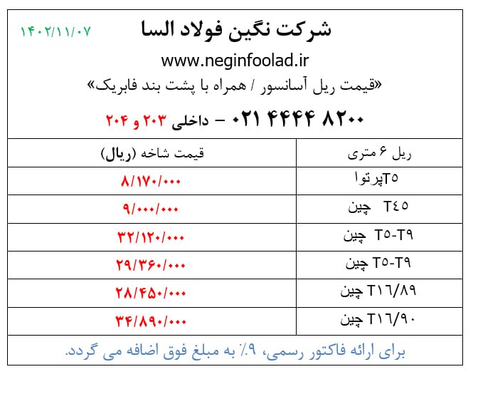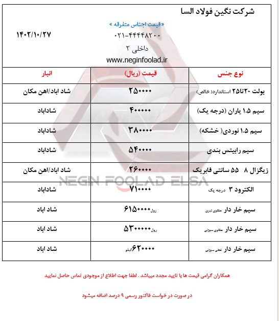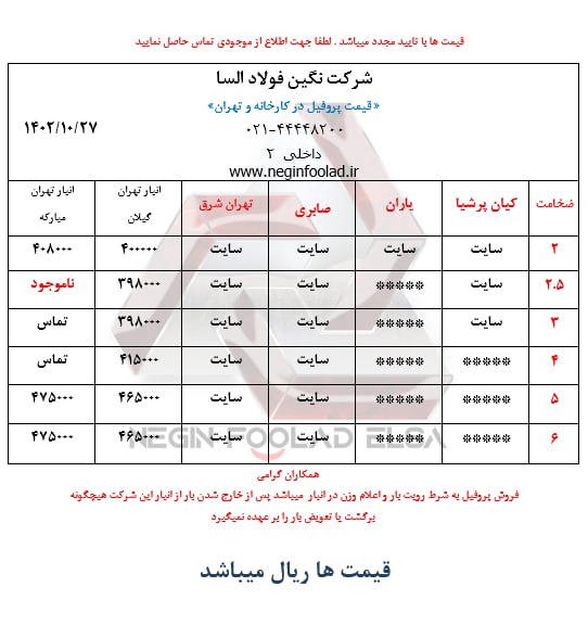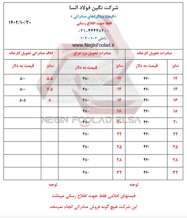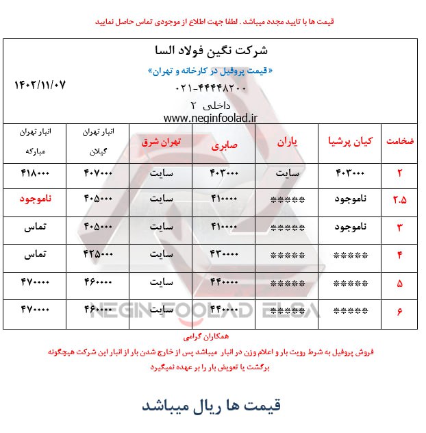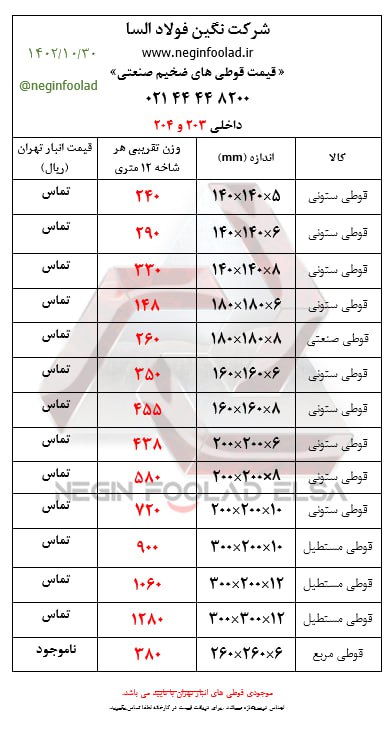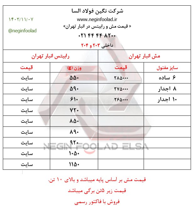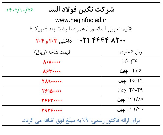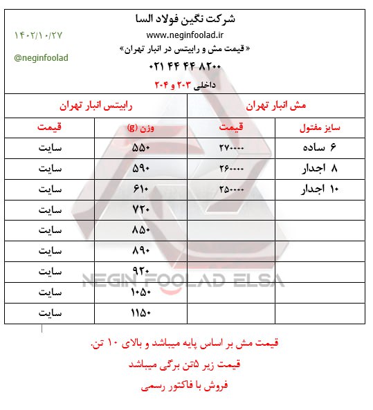 قیمت های لوله لوله مبلی پروفیل پروفیل صنعتی متفرقه رابیتس میلگرد ساده میلگرد صادراتی به روز شدند 😍 برای مشاهده قیمتها به وب سایت شرکت رجوع کنید . NeginFoolad ...