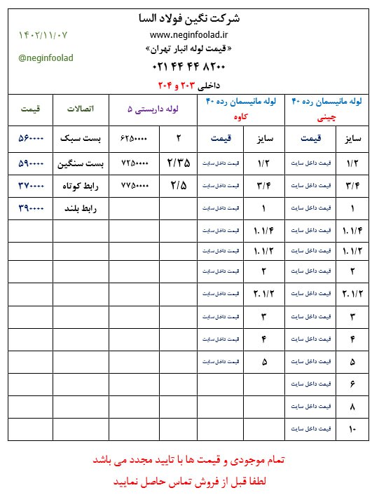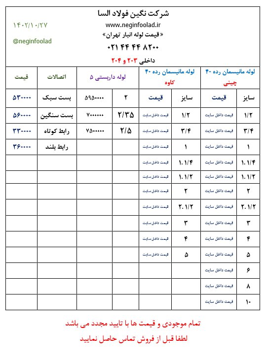 لوله #لوله_انبارتهران —رده 40 چین و کاوه #بست_رابط 📞 ۴۴ ۴۴ ۸۲۰۰ #داخلی ۲۰۳ و ۲۰۴