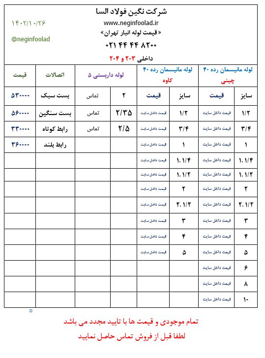 لوله #لوله_انبارتهران —رده 40 چین و کاوه #بست_رابط 📞 ۴۴ ۴۴ ۸۲۰۰ #داخلی ۲۰۳ و ۲۰۴