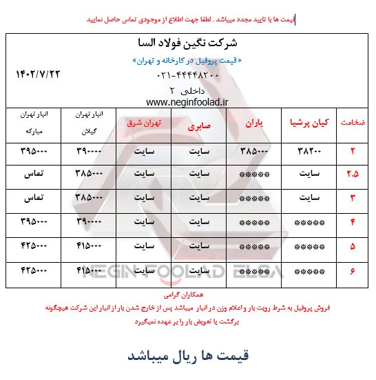 ⬅️شمال کشور ⭕️فایکو ساری—————-——-🔻——-——-- 24100 ⭕️امیرکبیر رشت ——————🔻——-——--23800 ⭕️آناهیتا گیلان—- —- -—- ——-↕️—————25000 ⭕️کاسپین رشت ...