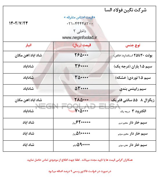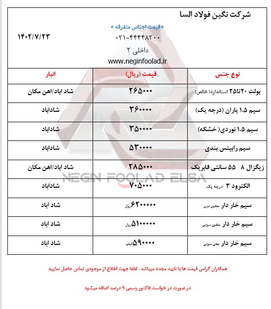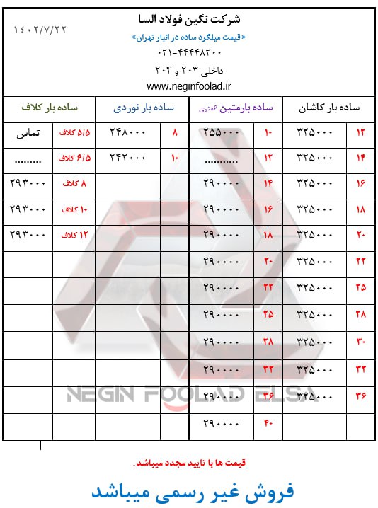 کارخانجات شرقی کشور ⭕️جهان فولاد سیرجان کرمان— ———🔻———--23600 ⭕️حدید سیرجان— ———-—-—↕️———-—25100 ⭕️ذوب نورد کرمان—- ————-—-↕️———-—24200 ⭕️بردسیر ...