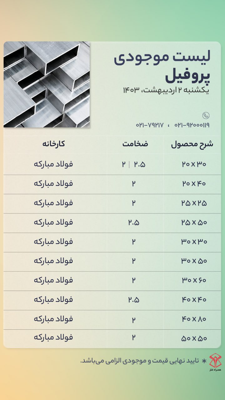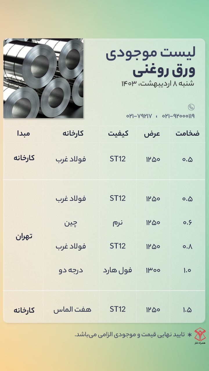 اعلام موجودی ورق گالوانیزه