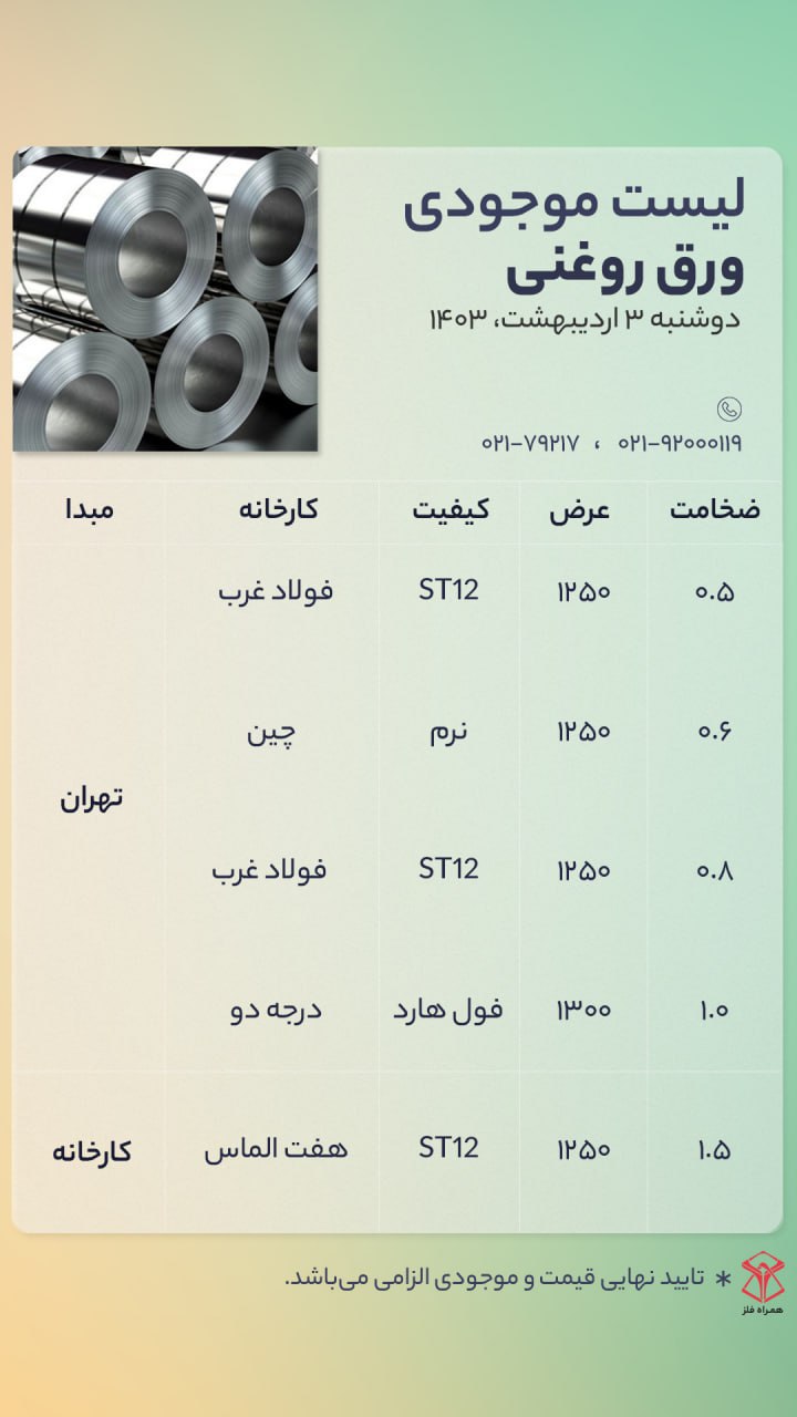اعلام موجودی ورق روغنی (سرد)