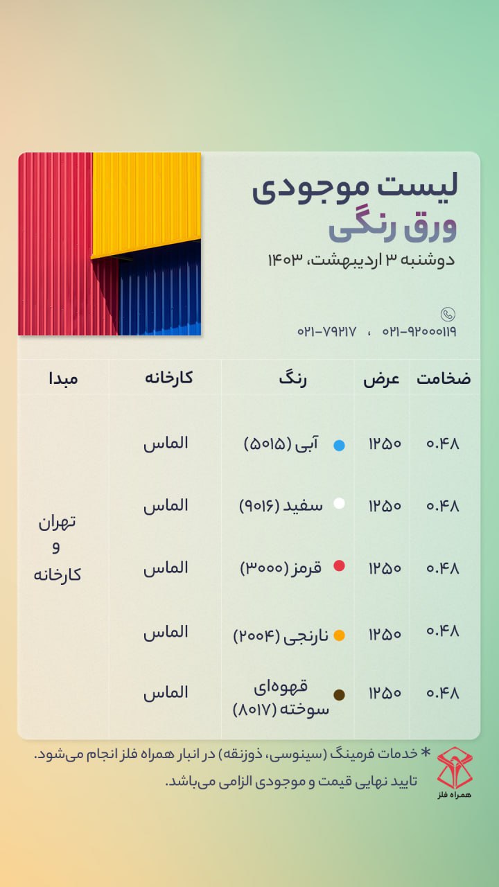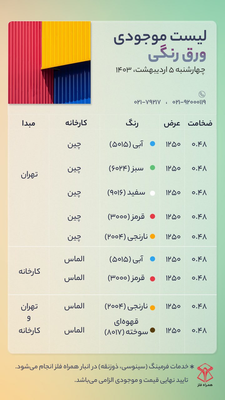 اعلام موجودی ورق رنگی