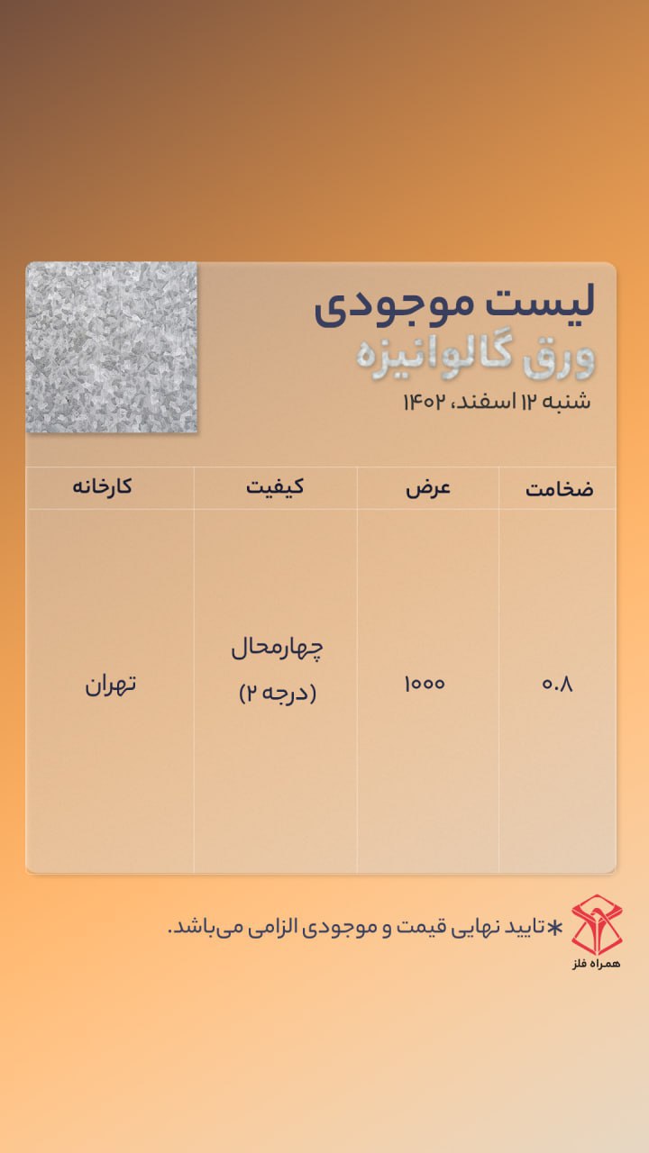 ⚜️#همراه_فلز_آسیا ⚜️ ❇️تهیه و تامین انواع ورق های فولاد ی و استیل 💠ورق روغنی 💠ورق سیاه 💠ورق گالوانیزه 💠انواع مقاطع طویل (تیر آهن و میلگرد و نبشی و ناودانی و ...