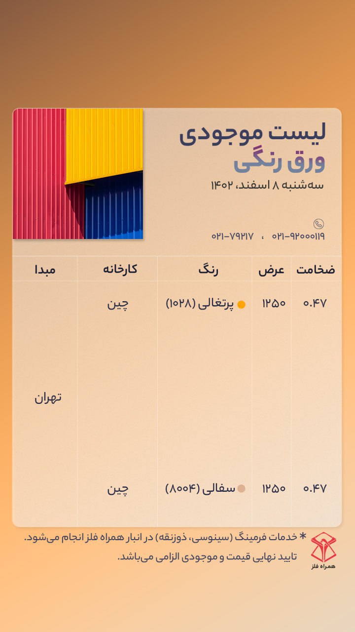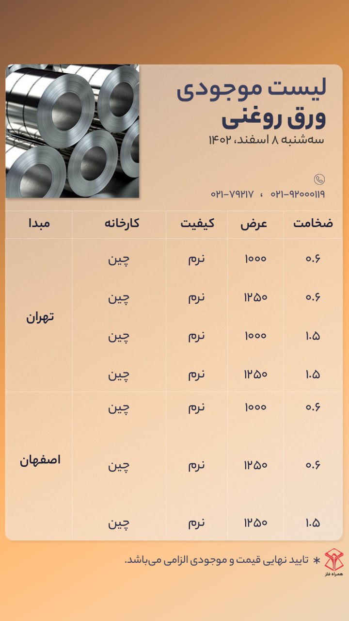 ⚜️#همراه_فلز_آسیا ⚜️ ❇️تهیه و تامین انواع ورق های فولاد ی و استیل 💠ورق روغنی 💠ورق سیاه 💠ورق گالوانیزه 💠انواع مقاطع طویل (تیر آهن و میلگرد و نبشی و ناودانی و ...