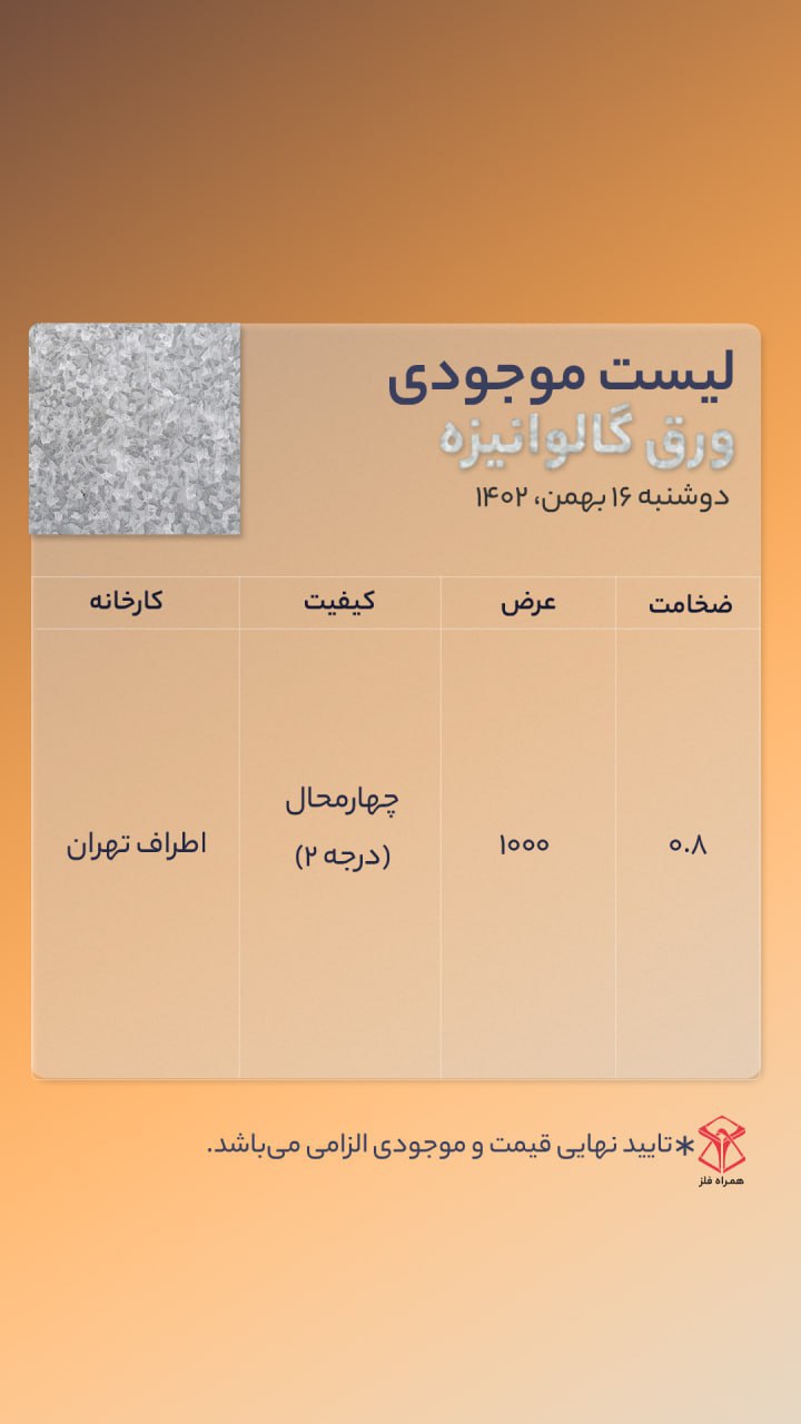 ⚜️#همراه_فلز_آسیا ⚜️ ❇️تهیه و تامین انواع ورق های فولاد ی و استیل 💠ورق روغنی 💠ورق سیاه 💠ورق گالوانیزه 💠انواع مقاطع طویل (تیر آهن و میلگرد و نبشی و ناودانی و ...