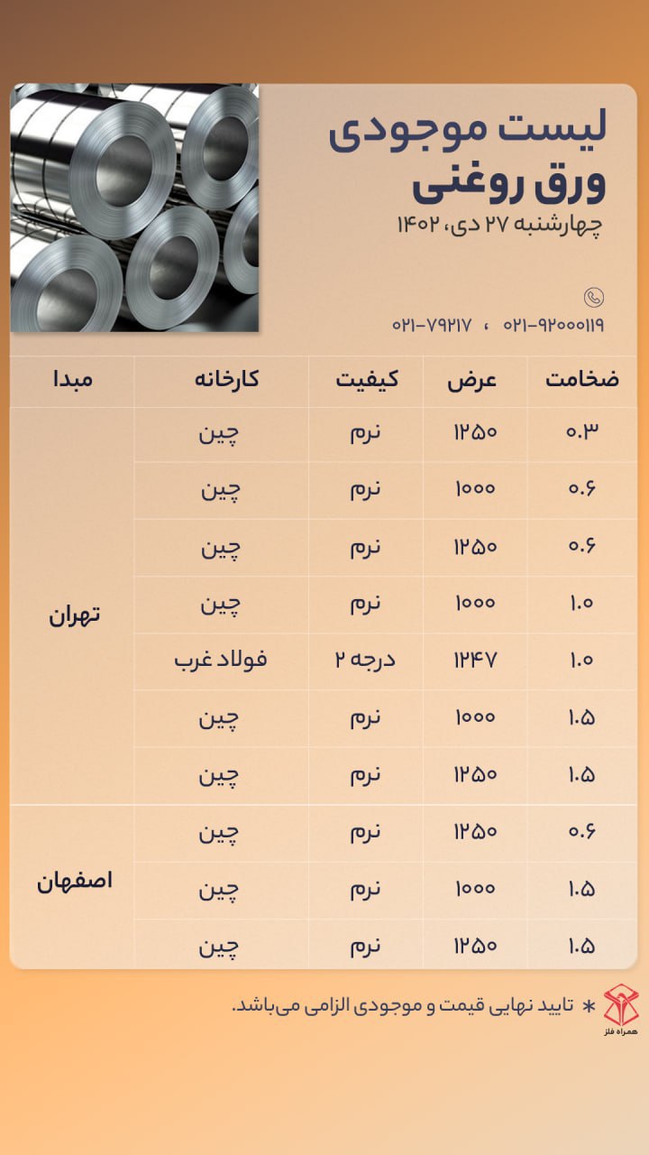 ⚜️#همراه_فلز_آسیا ⚜️ ❇️تهیه و تامین انواع ورق های فولاد ی و استیل 💠ورق روغنی 💠ورق سیاه 💠ورق گالوانیزه 💠انواع مقاطع طویل (تیر آهن و میلگرد و نبشی و ناودانی و ...