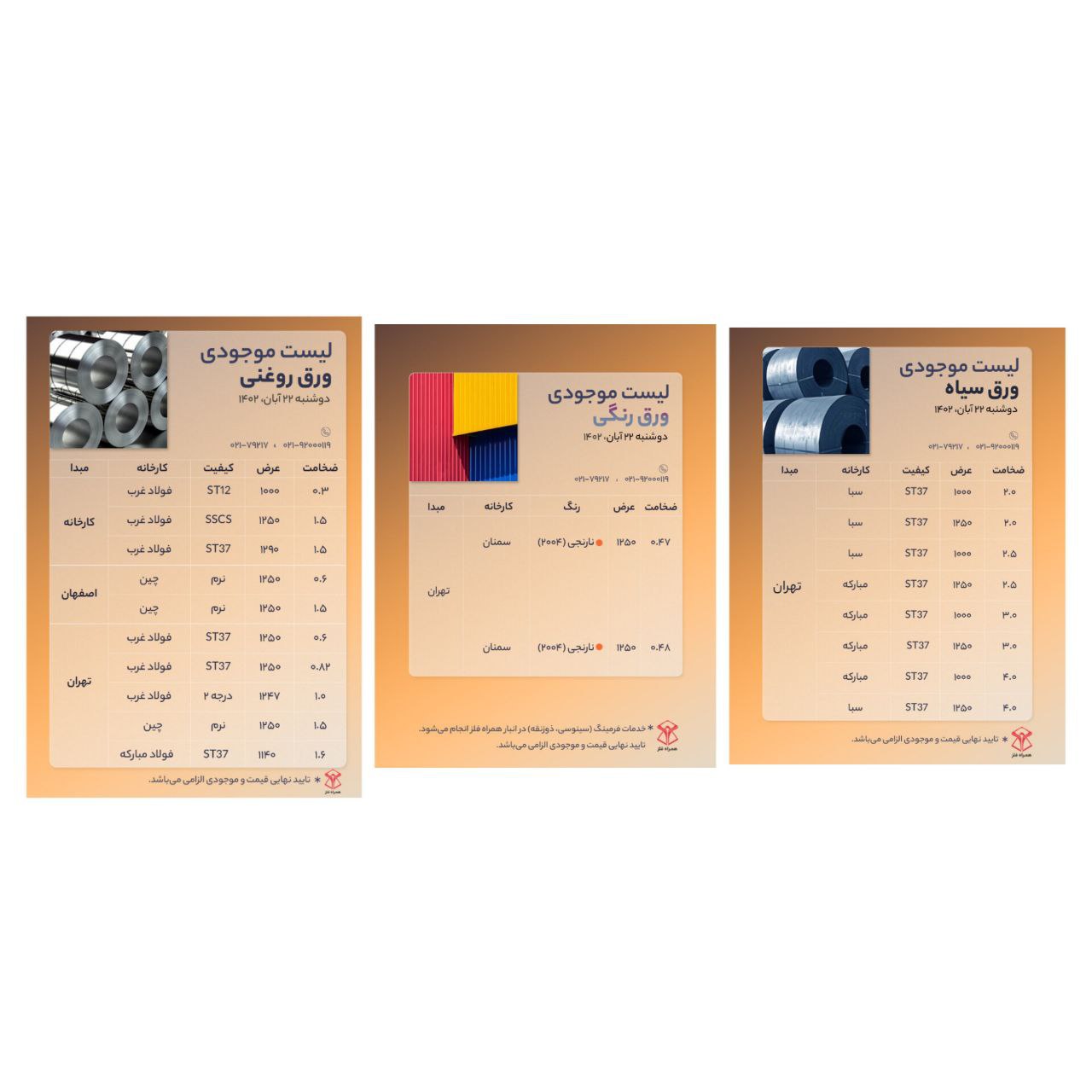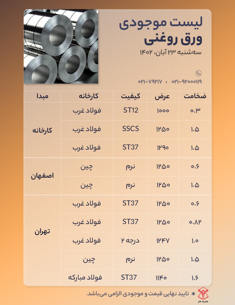 اعلام موجودی ورق روغنی (سرد) 2 همراه فلز