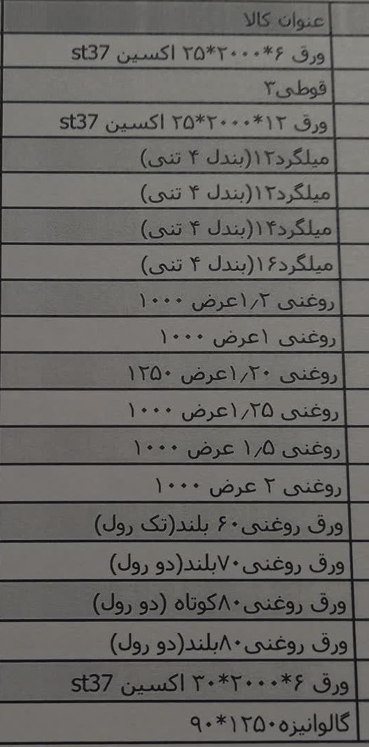 🔱گروه صنعتی ساختمانی #ایستا ورق اکسین ضخامت 25 گرید st37 ورق اکسین ضخامت 30 گرید st37 میلگرد 12 و 14 و 16 بندیل 4 تنی ورق روغنی 1/2 و 1 و 1/20 و 2 ورق روغنی 60بلند تک رول ورق روغنی 70 بلند دو رول ورق روغنی 80 بلند و کوتاه 2 رول ورق روغنی 60 کوتاه ورق گالوانیزه 90 عرض 1250 قوطی سایز 3 ☎️02172052 09126095629 🌐http://www.istateam.com 🔗https://foolad24.com/profile/11004