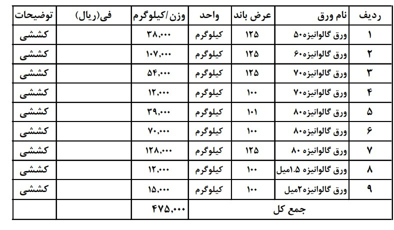 خریدار ورق روغنی با مشخصات زیر میباشیم. ورق با ضخامت 80 و عرض 125 فولاد غرب به میزان 5 تن ورق با ضخامت 70 و عرض 125 با گرید ST14 به میزان 12 تن