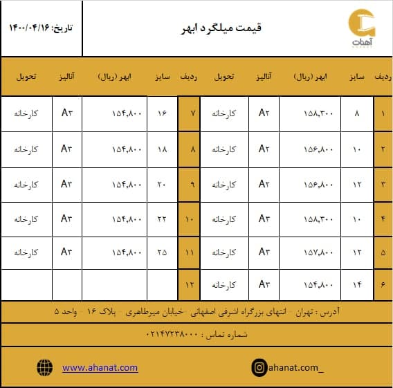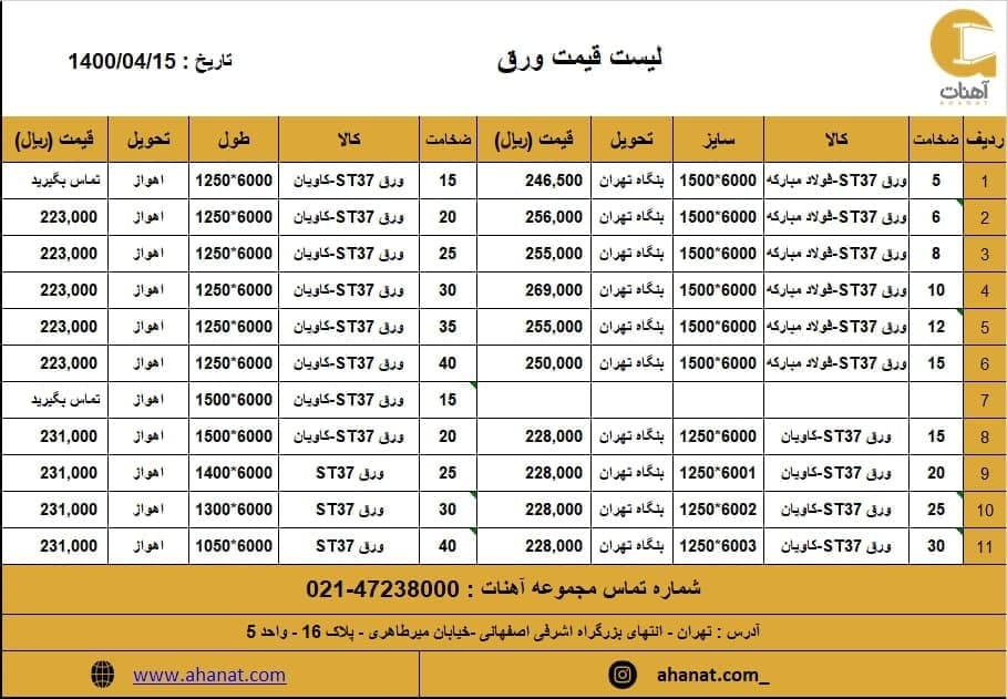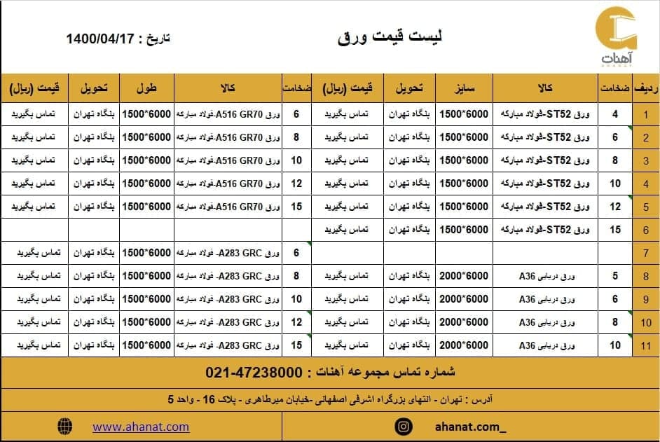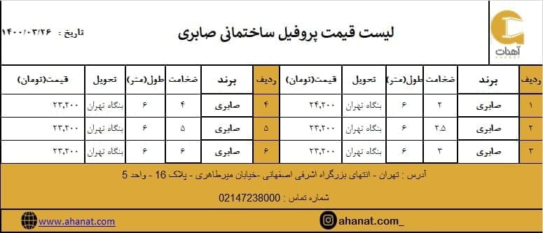 به دلیل نوسانات قیمت جهت اطلاع از تغییرات با کارشناسان ما تماس حاصل فرمایید. ☎️ ۰۲۱-۴۷۲۳۸۰۰۰ 📞 ۰۹۱۹۸۷۷۶۶۴۸ @Ahanat_com www.Ahanat.com
