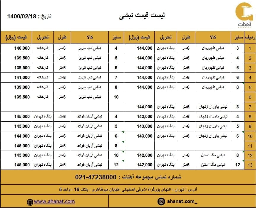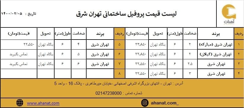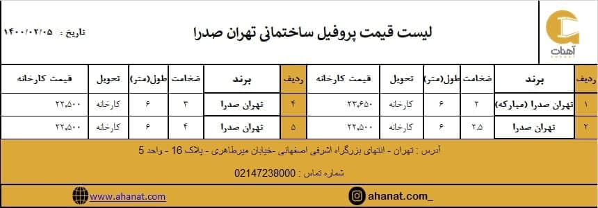 #پروفیل تهران صدرا #قیمت_پروفیل #تهران_صدرا #پروفیل_ساختمانی #قیمت_آهن_آلات #مقاطع_فولادی #پروفیل_تهرانصدرا #قوطی #آهنات به دلیل نوسانات قیمت جهت اطلاع از ت ...