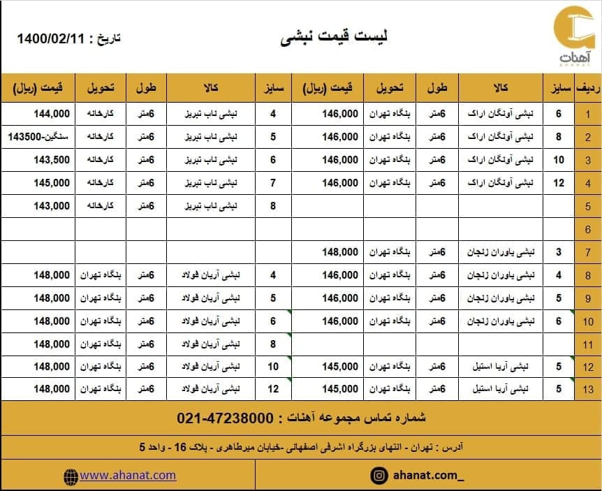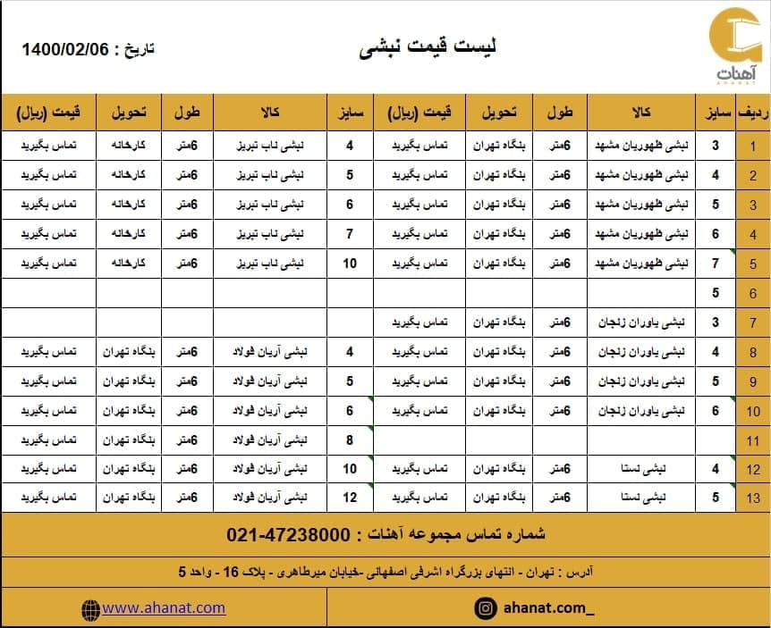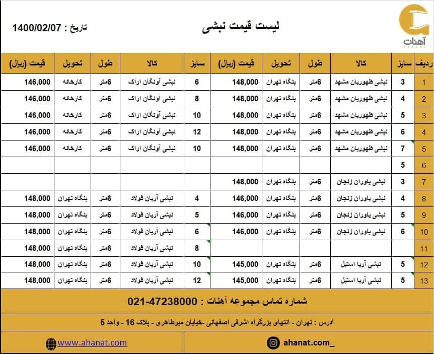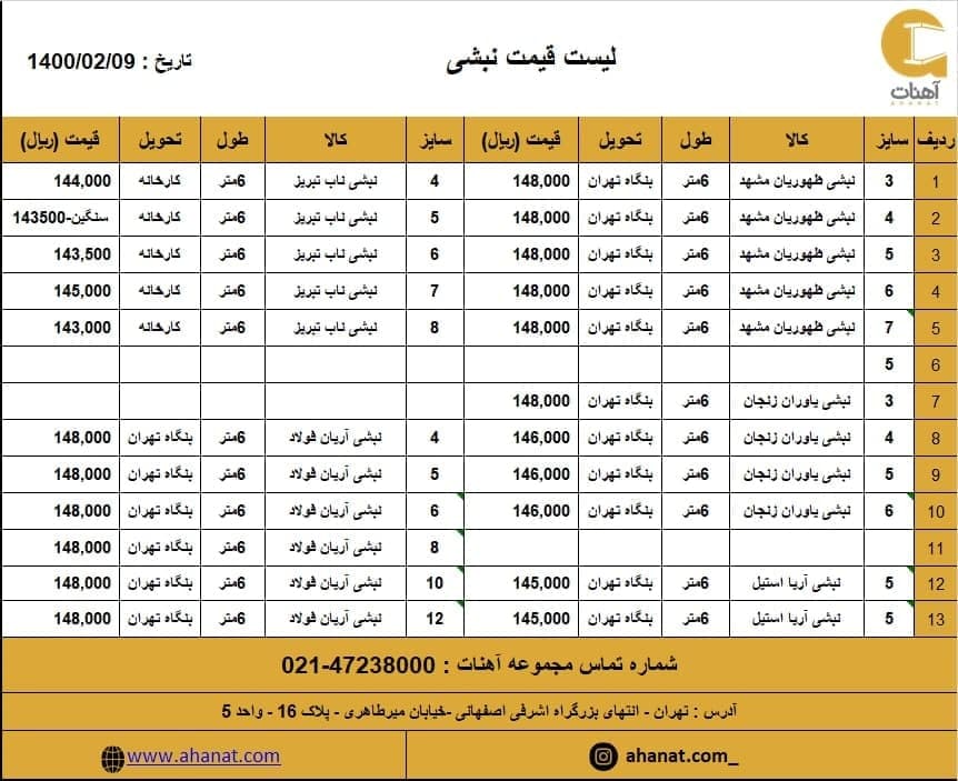 #نبشی #آریا_استیل #یاوران_زنجان #ظهوریان_مشهد #ناب_تبریز #آریان_فولاد #بنگاه_تهران #کارخانه مشخصات و قیمت نبشی به دلیل نوسانات قیمت جهت اطلاع از تغییرات با کار ...
