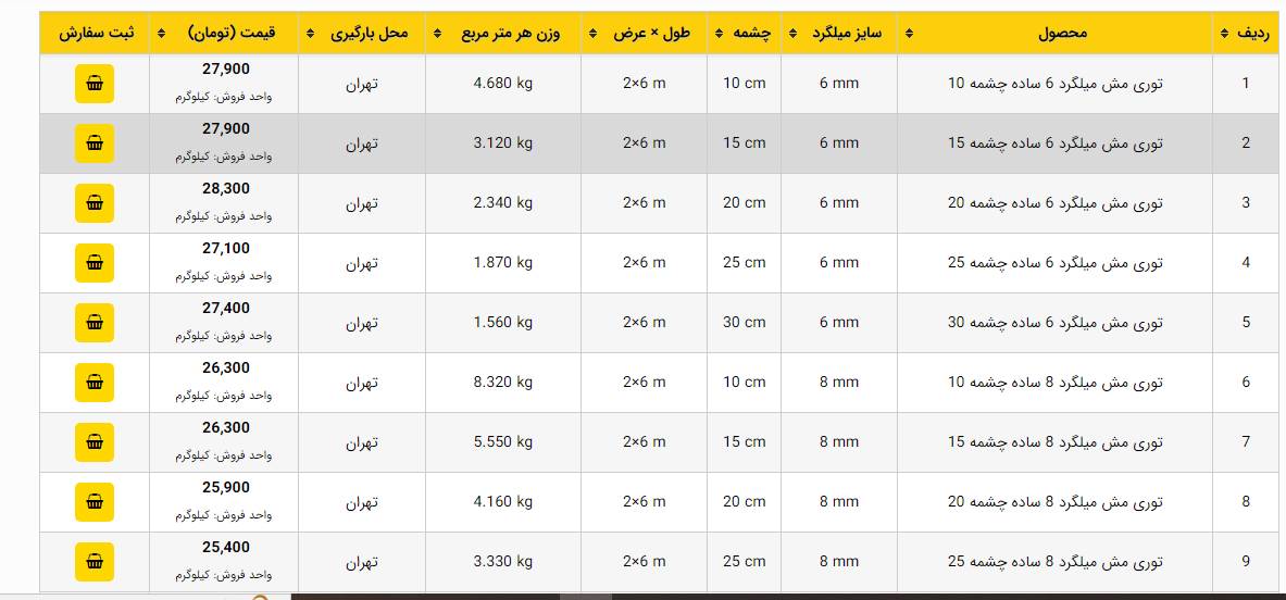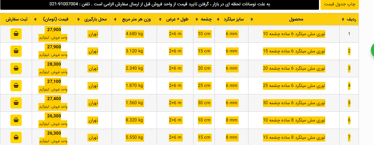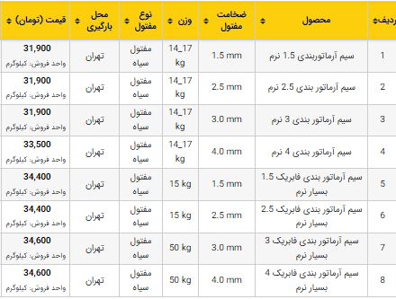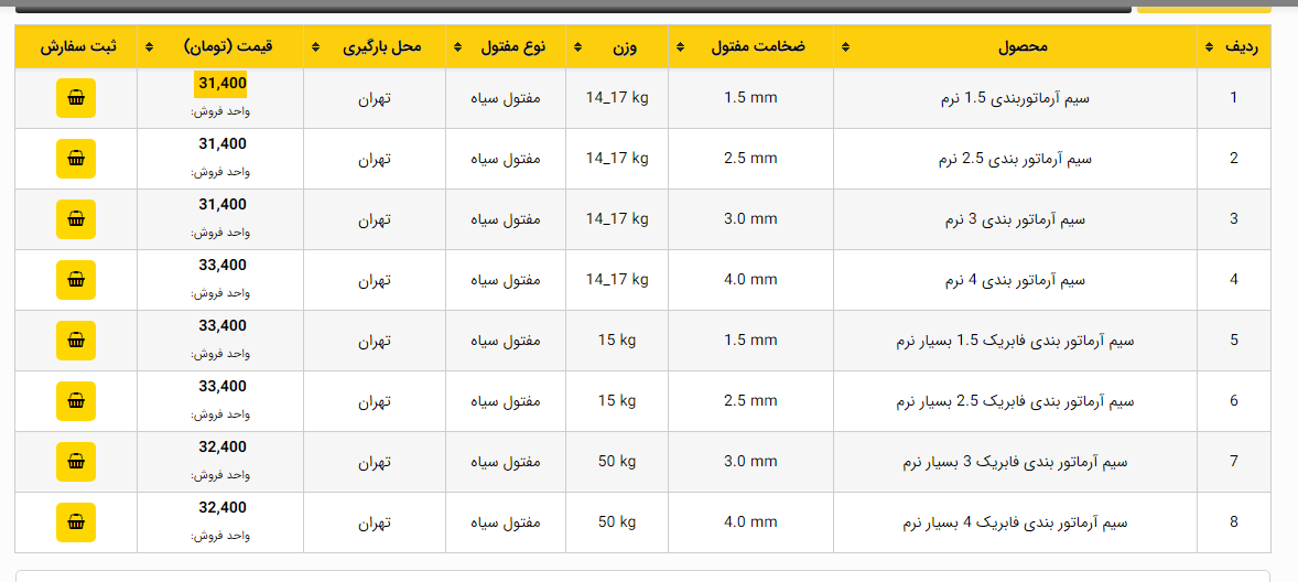 اعلام موجودی سیم ارماتور بندی شهر مفتول