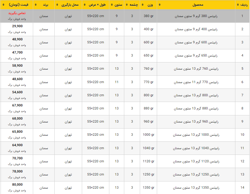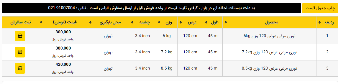 اعلام موجودی انواع توری توری رابیتس شهرمفتول