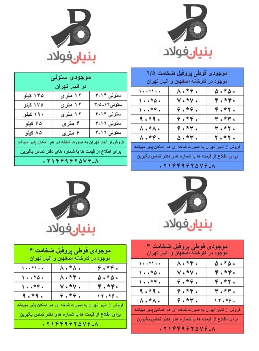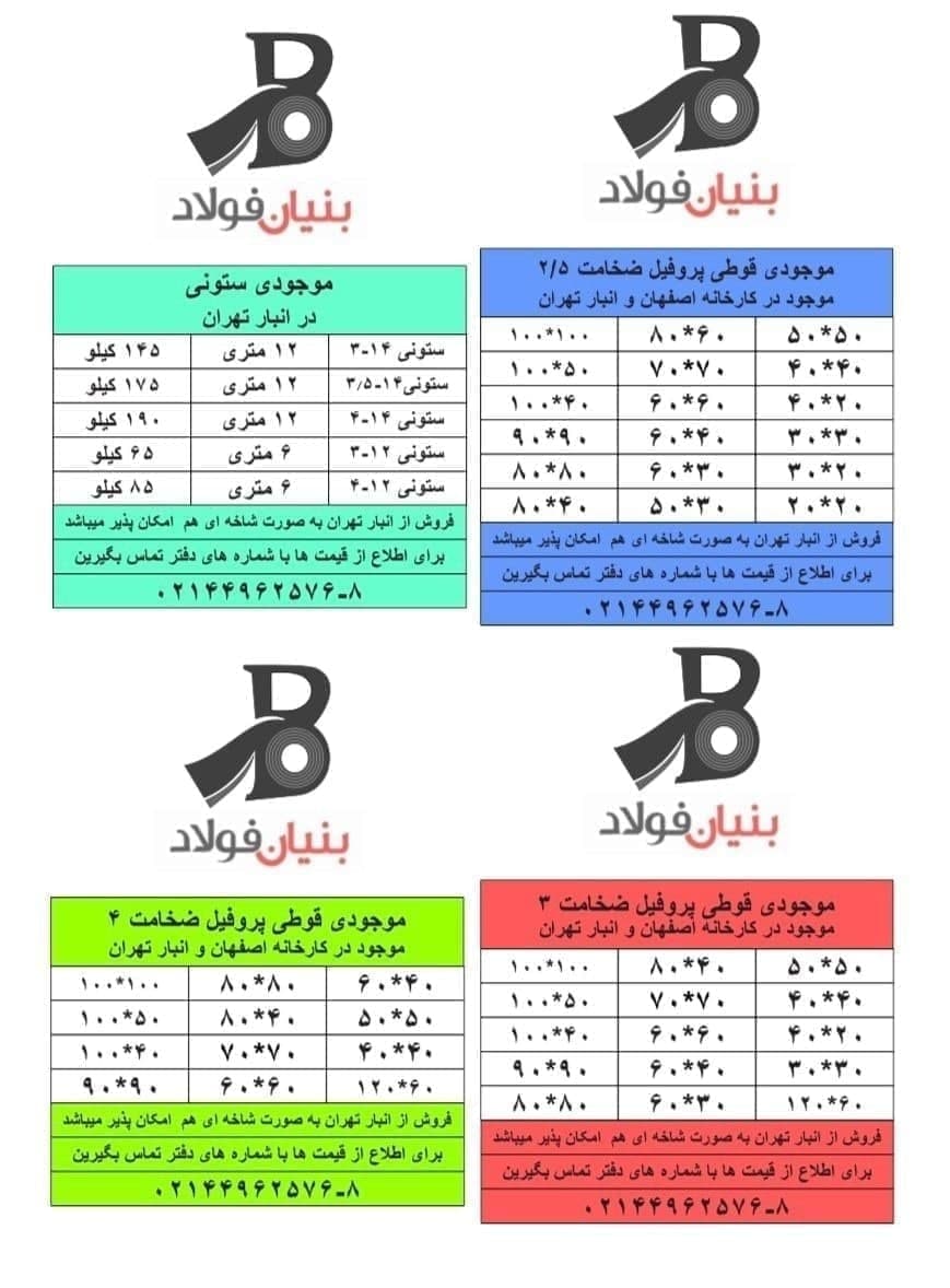 #بنیان_فولاد 🔸فروش انواع آهن آلات 🔸فروش انواع ورق سرد،گرم، 🔸فروش انواع قوطی و پروفیل و ... 🔸خدمات برشکاری ☎️۰۲۱۴۴۹۶۲۵۷۶-۸ 🌐 www.bonyanfoulad.com 🆔https://t ...