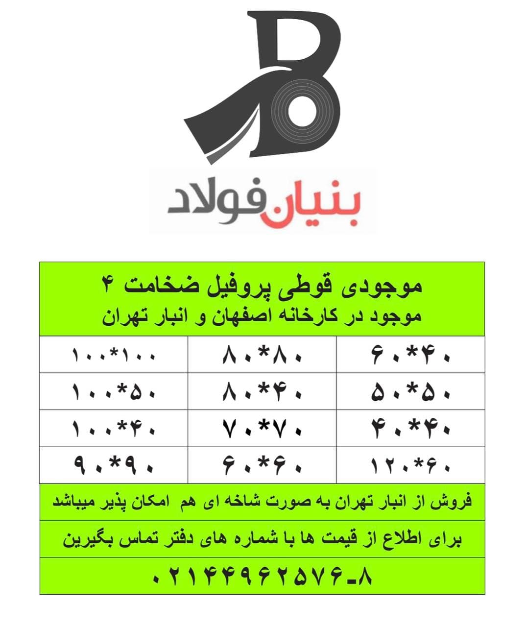 #بنیان_فولاد 🔸فروش انواع آهن آلات 🔸فروش انواع ورق سرد،گرم، 🔸فروش انواع قوطی و پروفیل و ... 🔸خدمات برشکاری ☎️۰۲۱۴۴۹۶۲۵۷۶-۸ 🌐 www.bonyanfoulad.com 🆔https://t ...