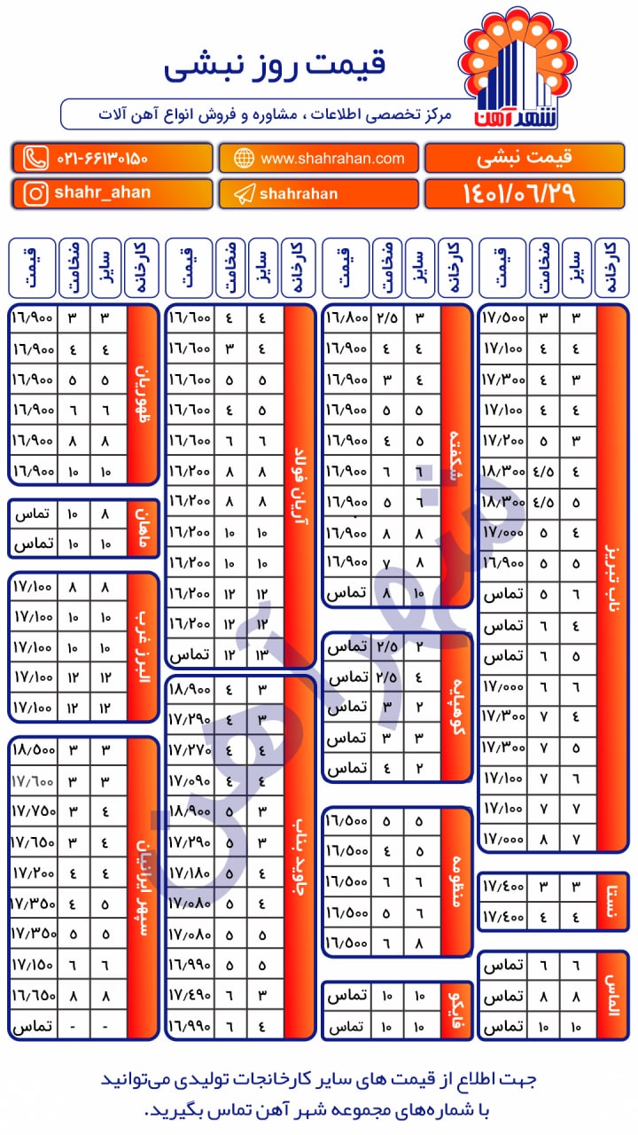 [ Photo ] 🌺🍂🍃🌺🍃🍂🌺🍃🍂 #قیمت_ورق_رنگی در کارخانه 📅 25 خرداد 1400 @shahrahan 🔸مشاهده قیمت به روز کلیه کارخانجات 👇 www.shahrahan.com 🌍آدرس مجموعه شهرآهن https ...