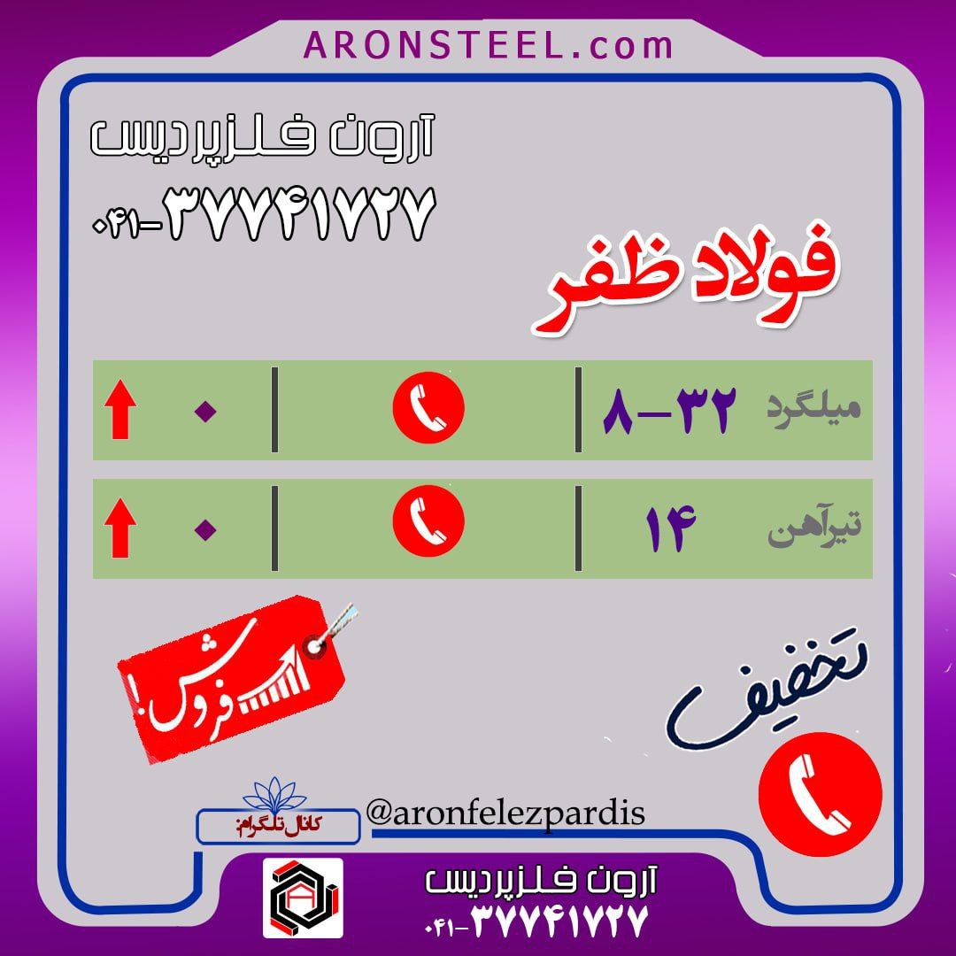 . ♦️ فولاد ظفر بناب♦️🔰 . 21 مرداد شنبه میلگرد ثابت↔️ [ 25950 ] 8 〰️ ...