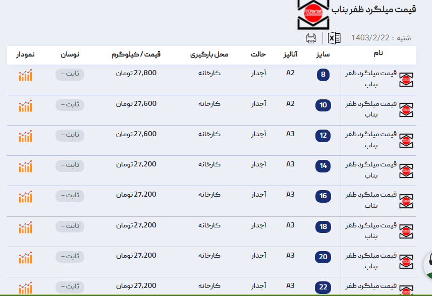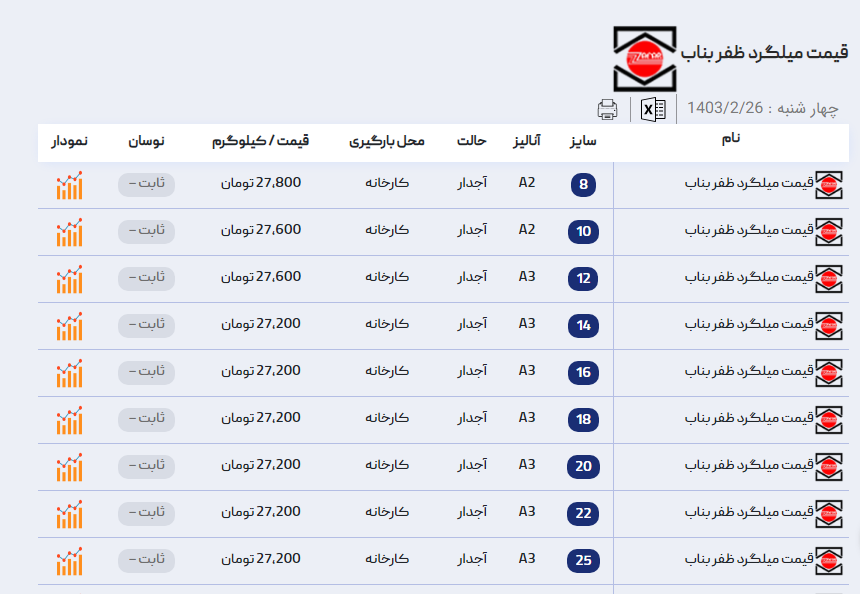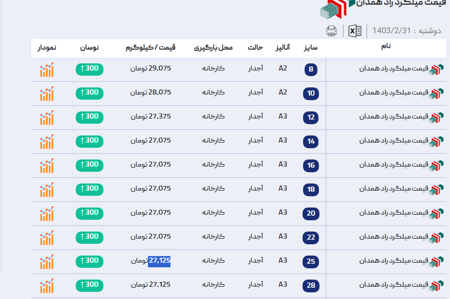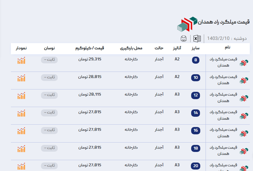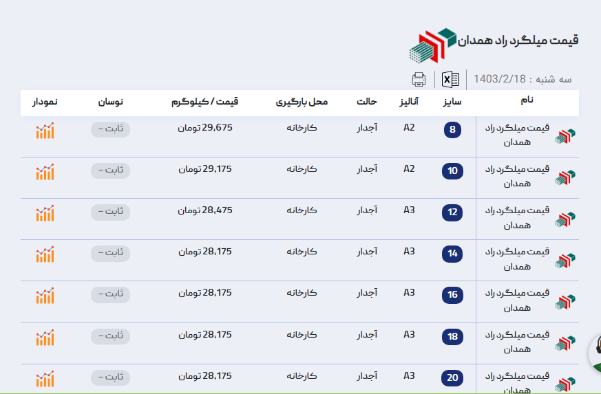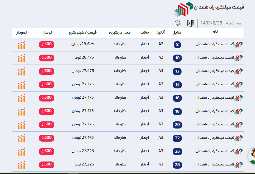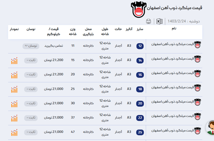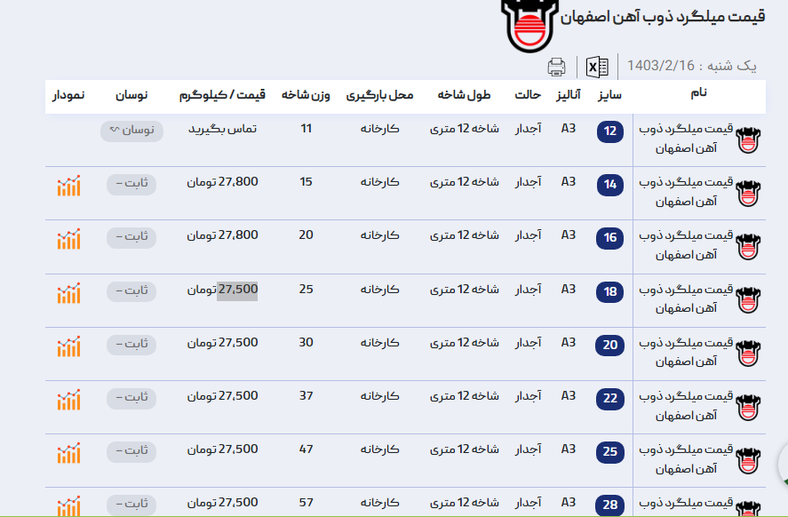 اعلام موجودی میلگرد