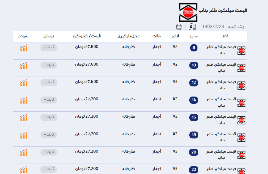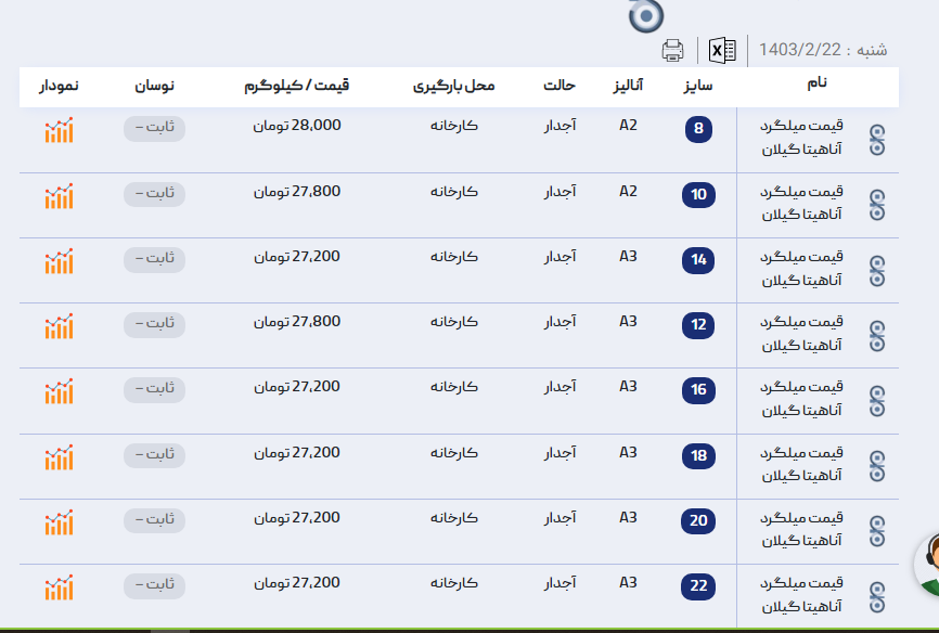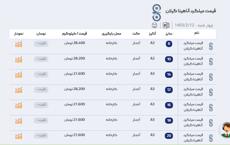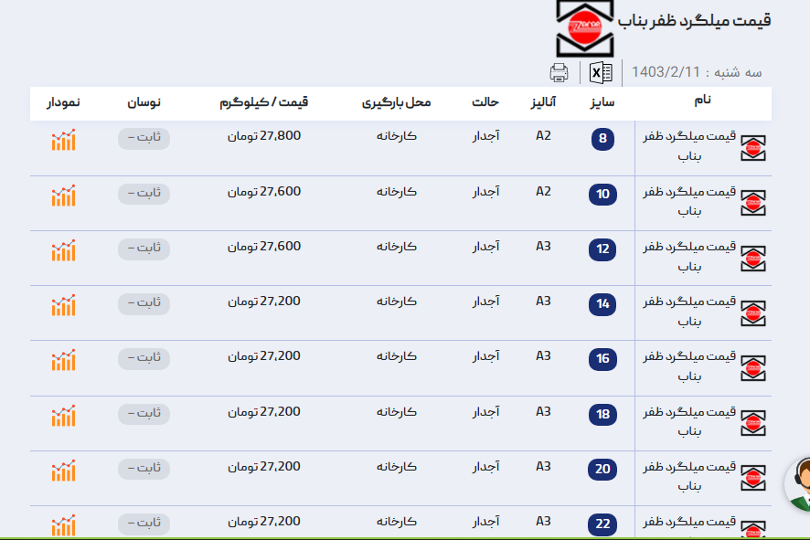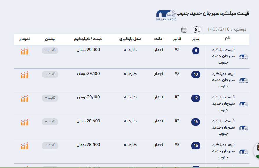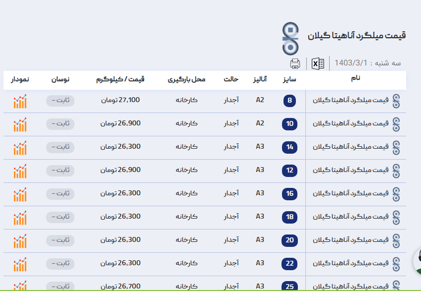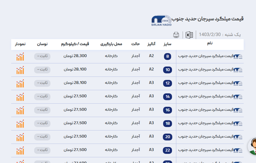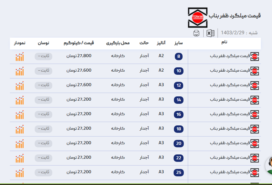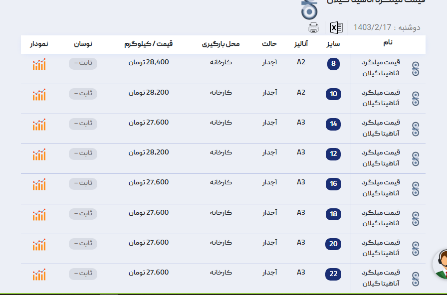 اعلام موجودی میلگرد