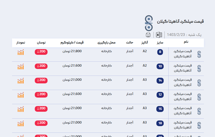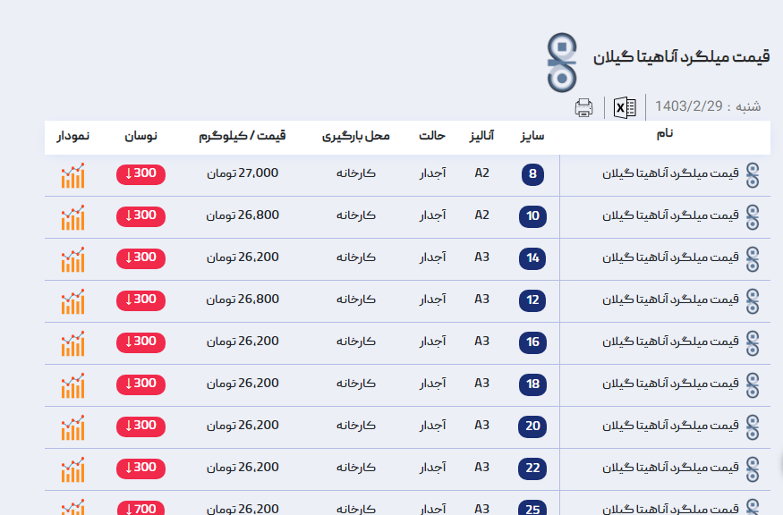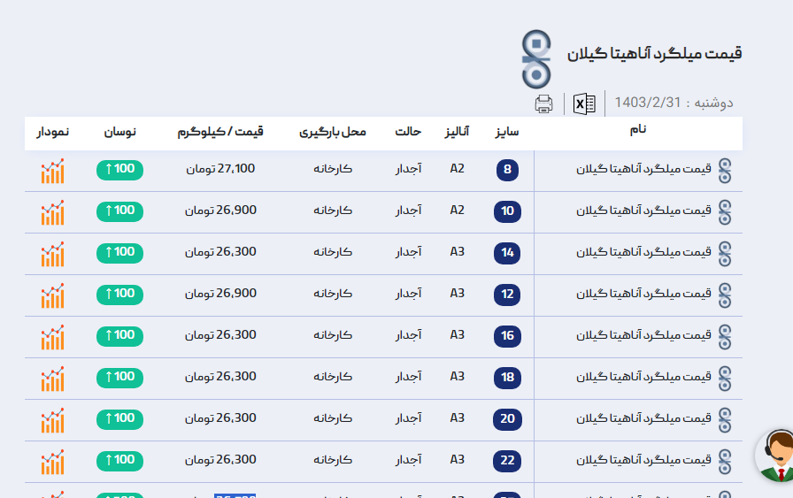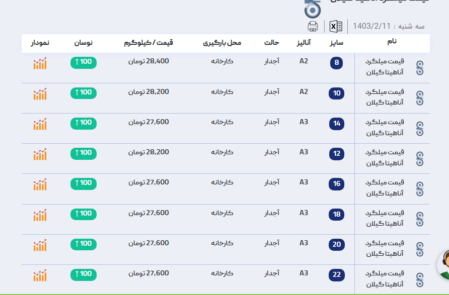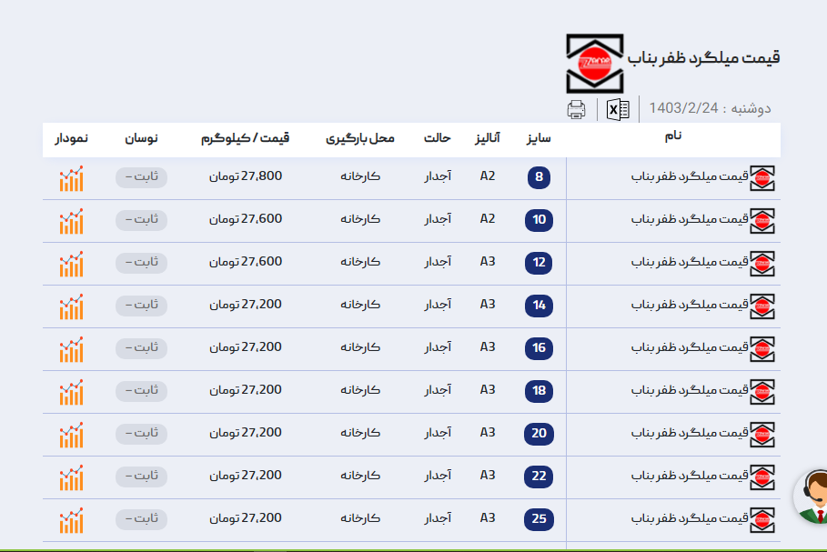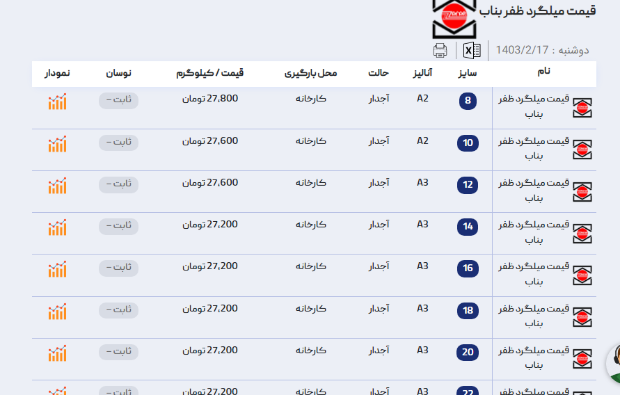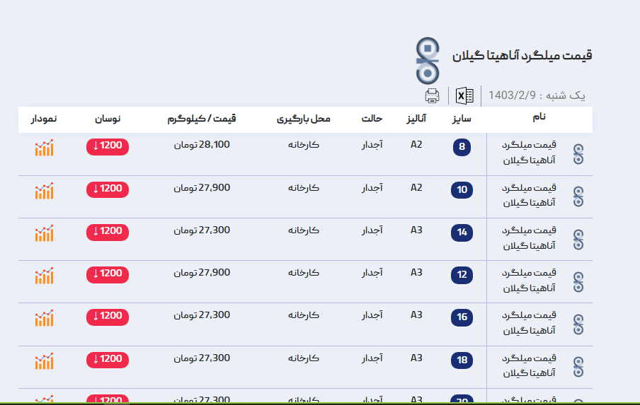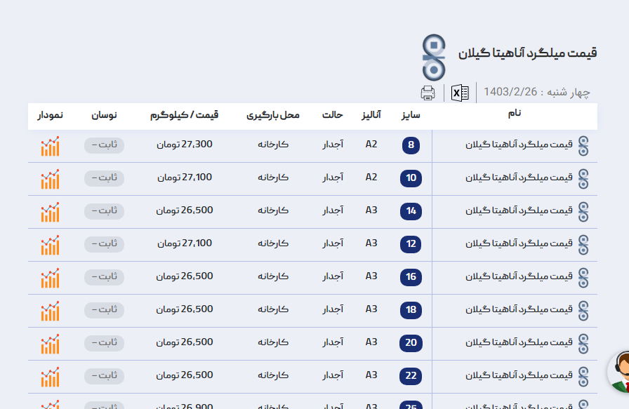 اعلام موجودی میلگرد