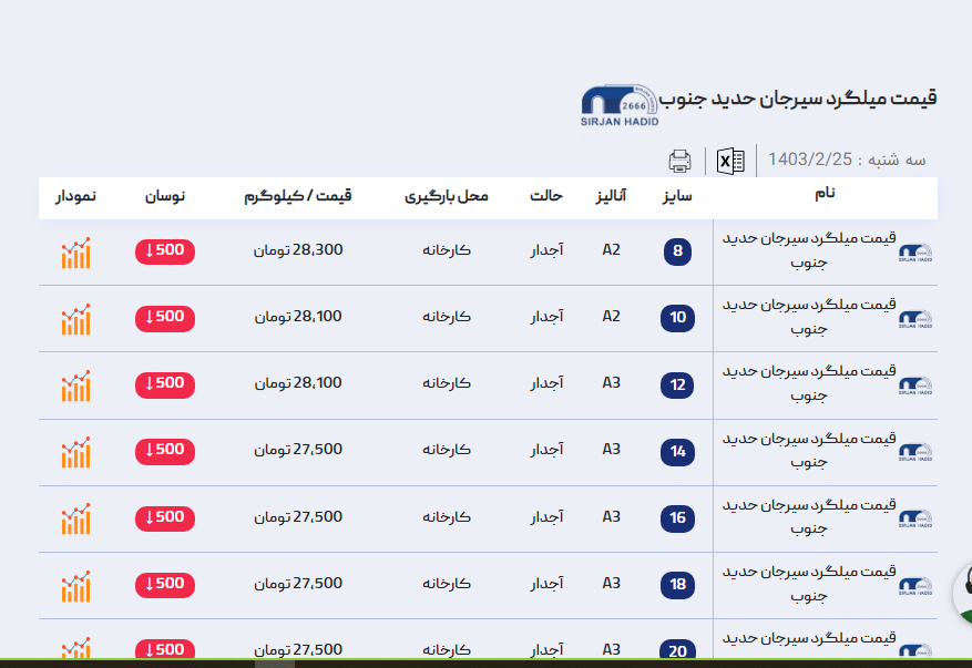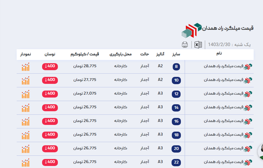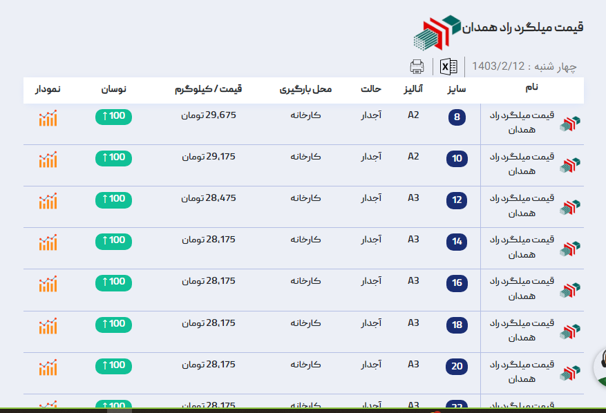 اعلام موجودی میلگرد آراد آهن