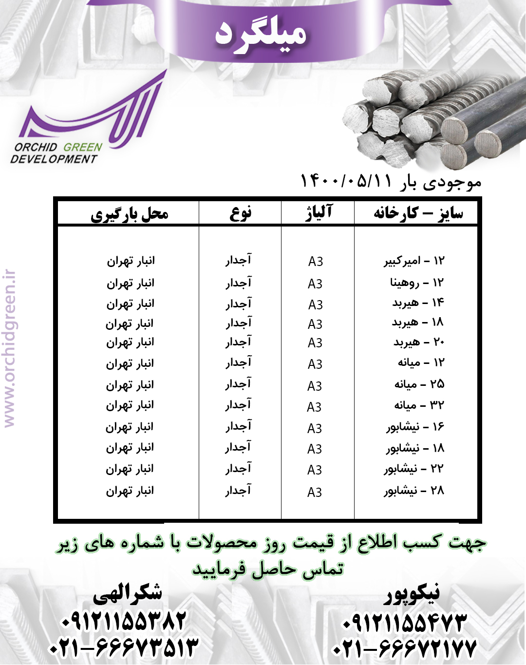 فروش انواع میلگرد آجدار تنها از شرکت توسعه سبز ارکید ، بخواهید . www.orchidgreen.ir