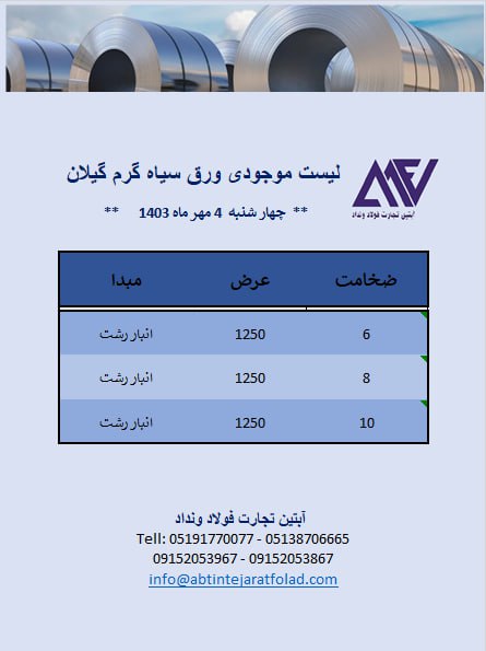 اعلام موجودی ورق گرم (سیاه)