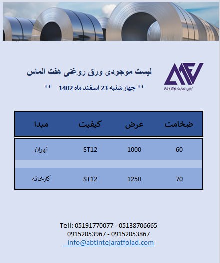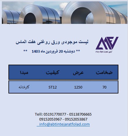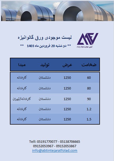 اعلام موجودی ورق گالوانیزه