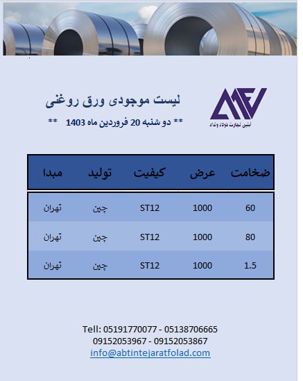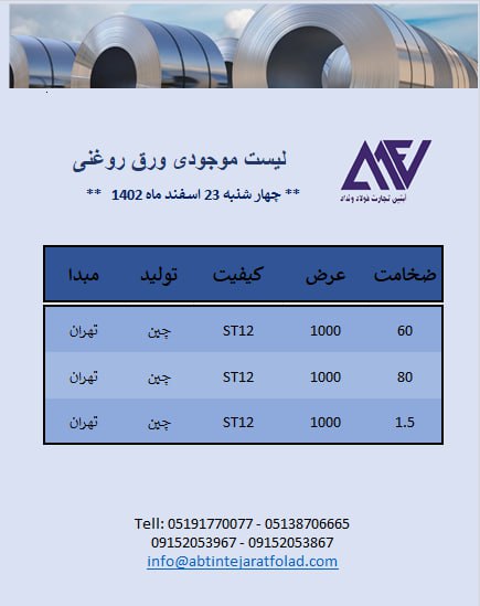 اعلام موجودی ورق روغنی (سرد)