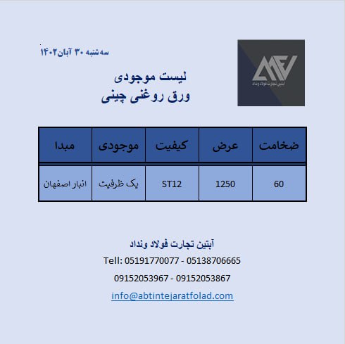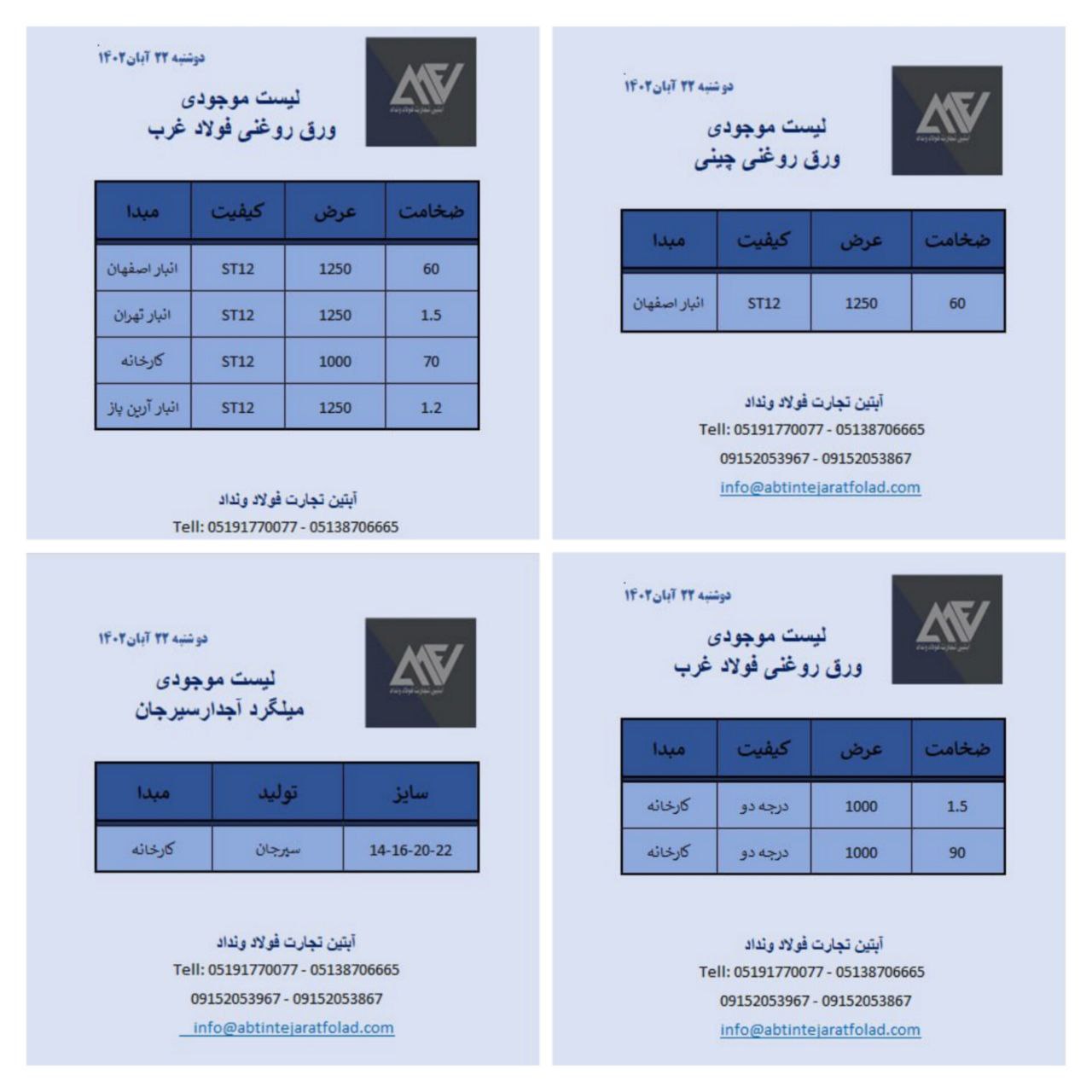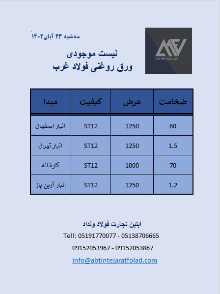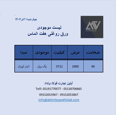 [ ✳️#آبتین_تجارت_فولاد_ونداد ⬅️ توزیع انواع ورق های فولادی از مبادی: 🔸ورق روغنی فولاد غرب آسیا 🔸ورق سیاه گیلان 🔸ورق سیاه مبارکه 🔸ورق گالوانیزه #جهت_مشاهده_پروف ...