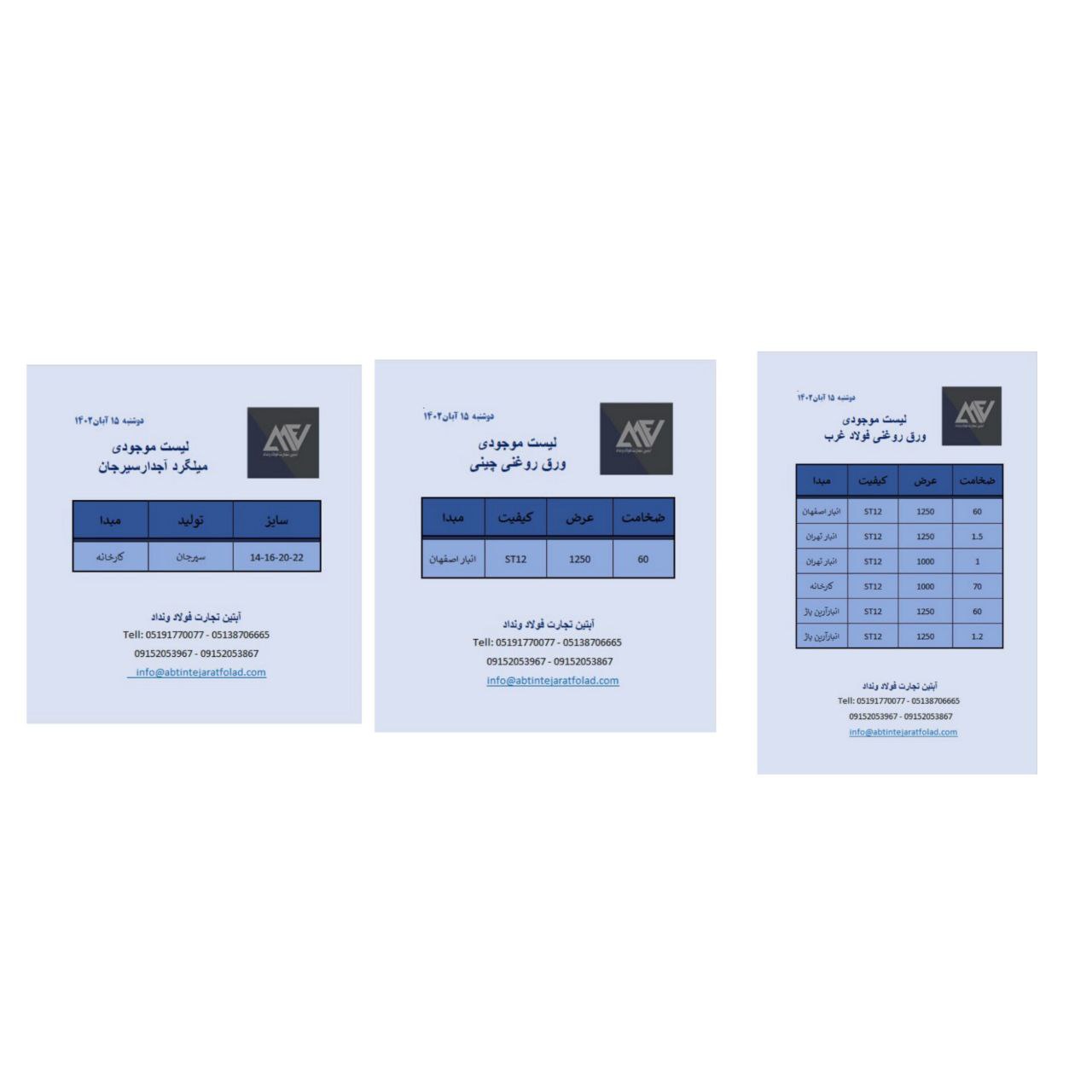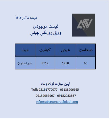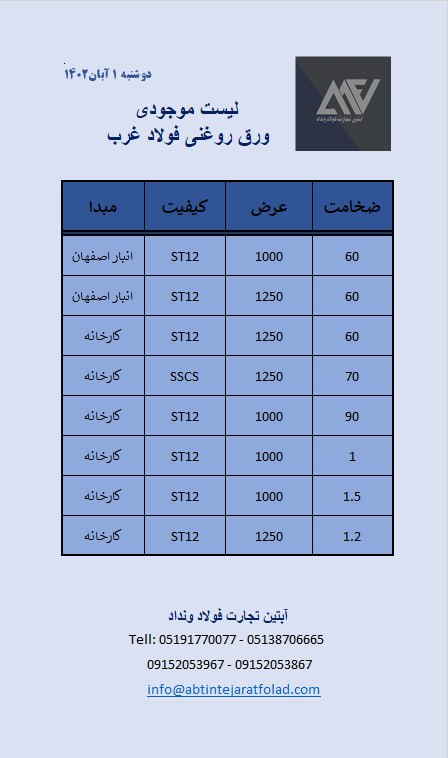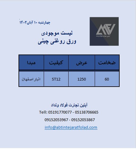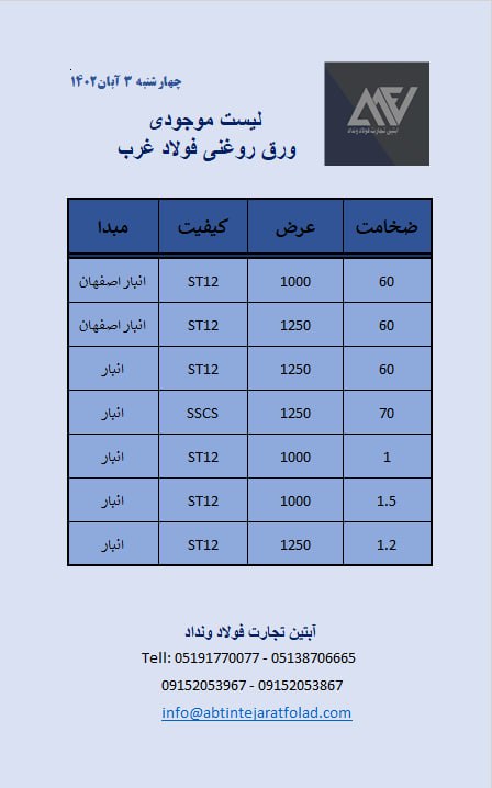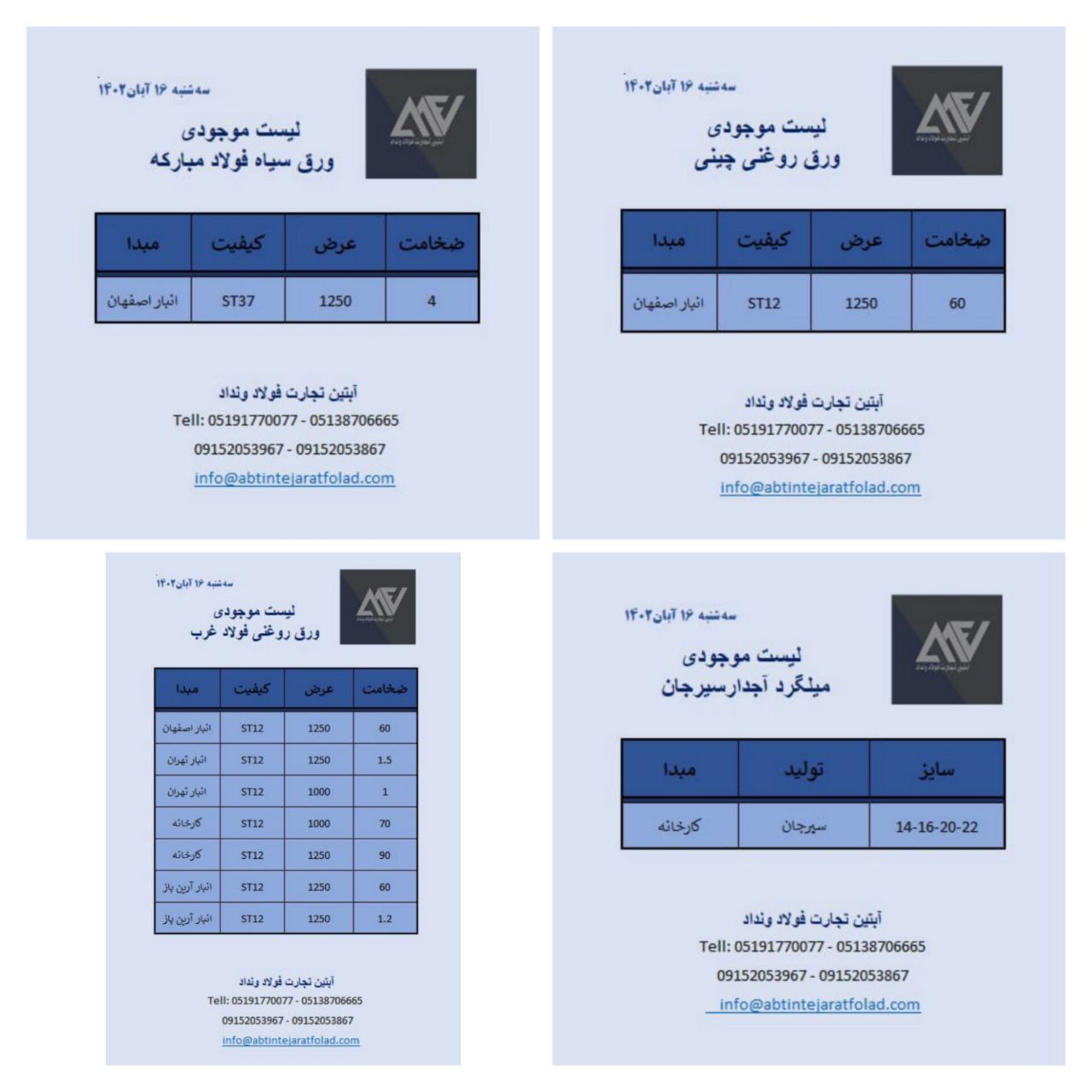 اعلام موجودی ورق گالوانیزه و رنگی