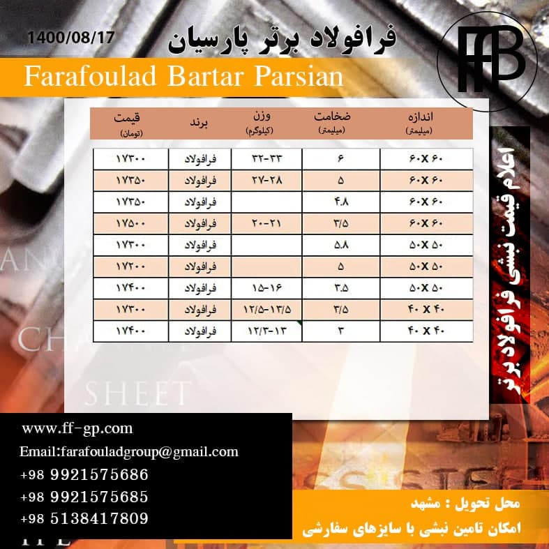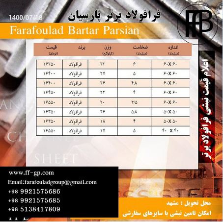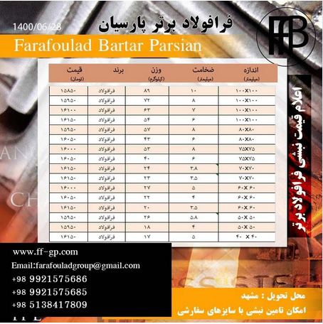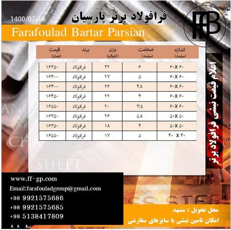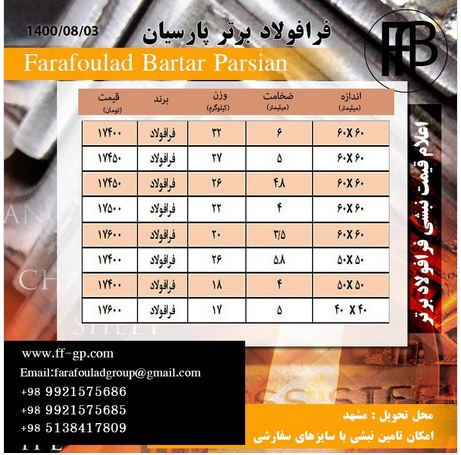قیمتهای فرافولاد برتر پارسیان