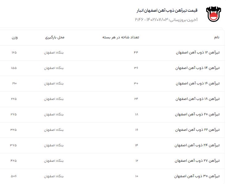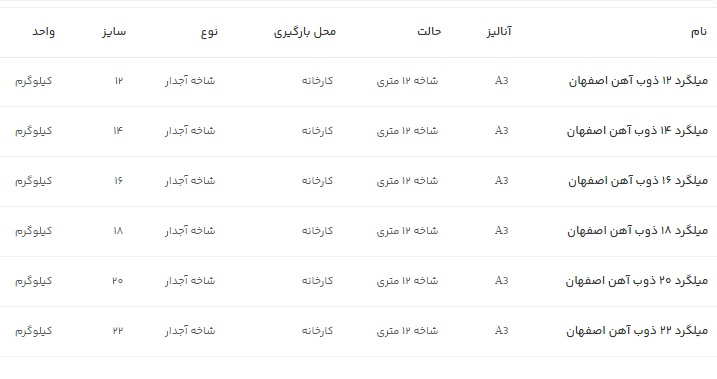 اعلام موجودی میلگرد آجدار