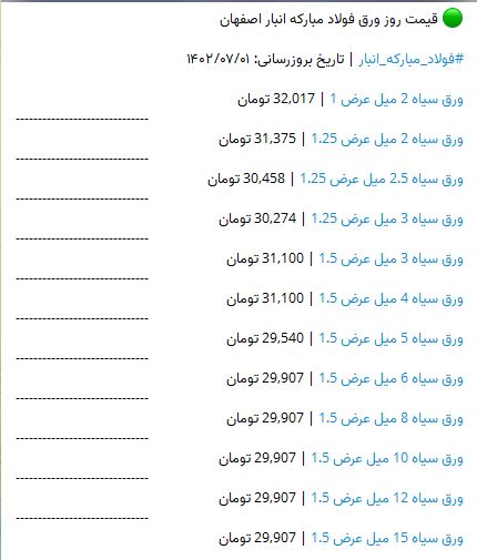 🟢 قیمت روز میلگرد ابهر #ابهر | تاریخ بروزرسانی: ۱۴۰۲/۰۷/۰۳ میلگرد 8 سیادن ابهر ------------------------------ میلگرد 16 سیادن ابهر ------------------------- ...