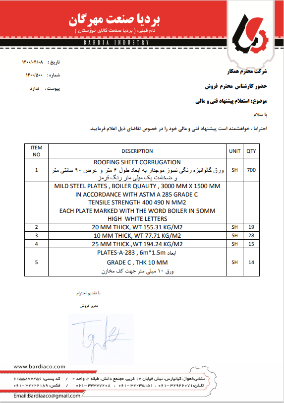 درخواستهای خرید بردیا صنعت مهرگان