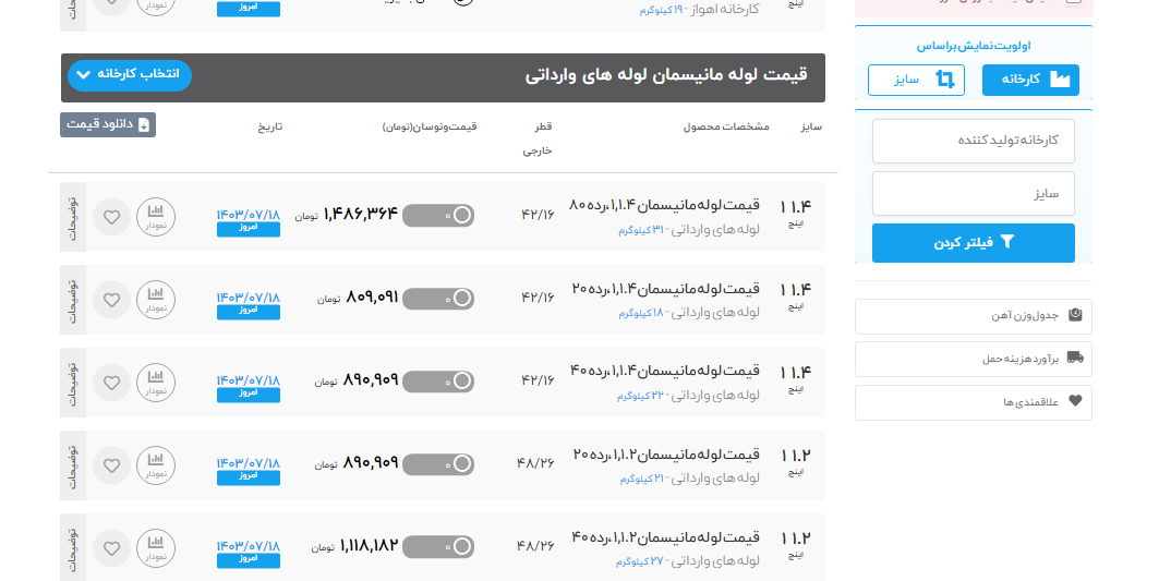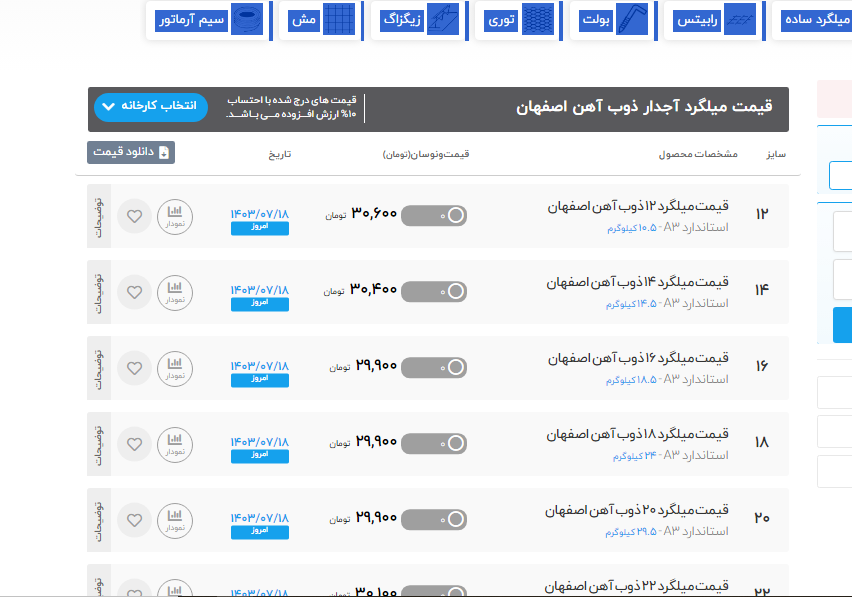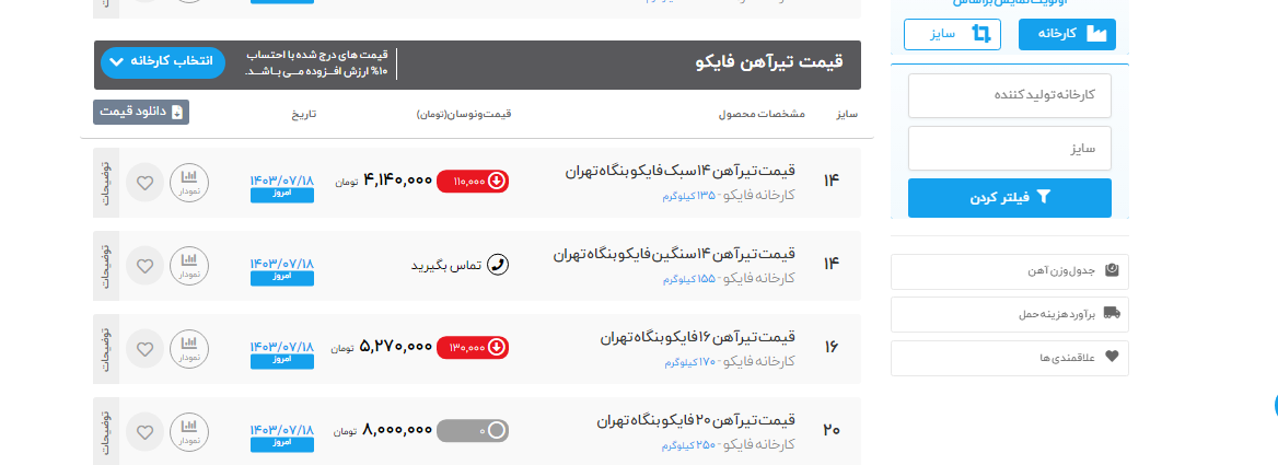 جهت مشاهده قیمت محصولات کلیک کنید.درخواستهای خرید آهن پرایس