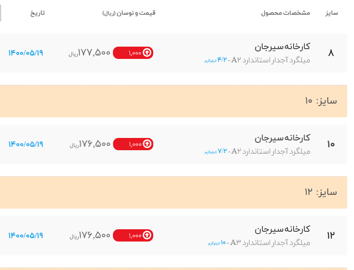 #میلگرد_آجدار کارخانه پرشین فولاد 🗓دوشنبه 18 مردادماه 1400 🗓 ثابت↔️ 💠 استاندارد A3 💠 سایز10: 17400 سایز12: 17200 ...