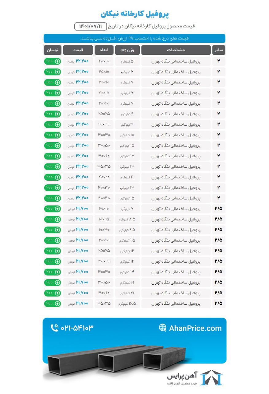 🌐 لیست قیمت پروفیل ساختمانی نیکان #قیمت_پروفیل_ساختمانی #پروفیل_نیکان 📌ارتباط با مشاوران خرید آهن آلات : 👇🏻 ☎️ 021-54103